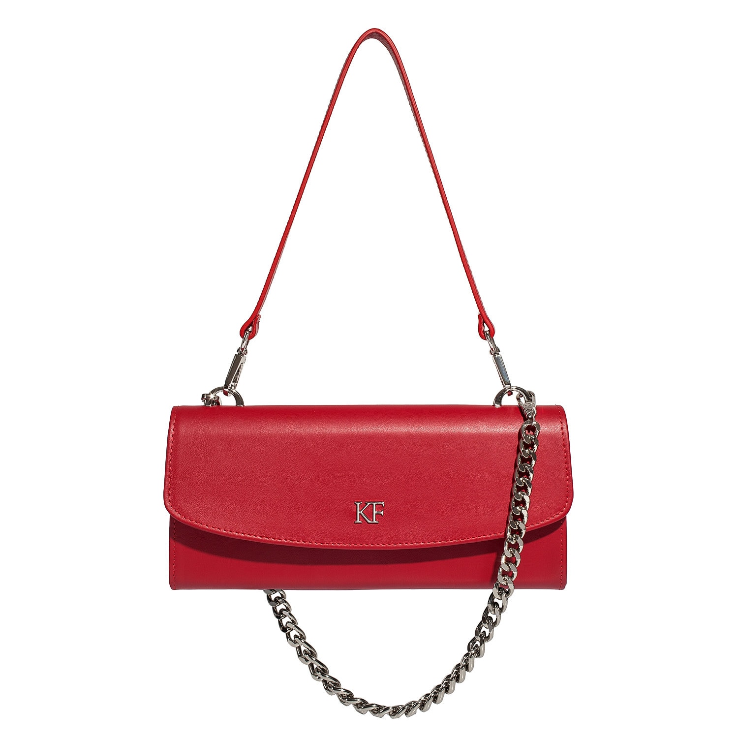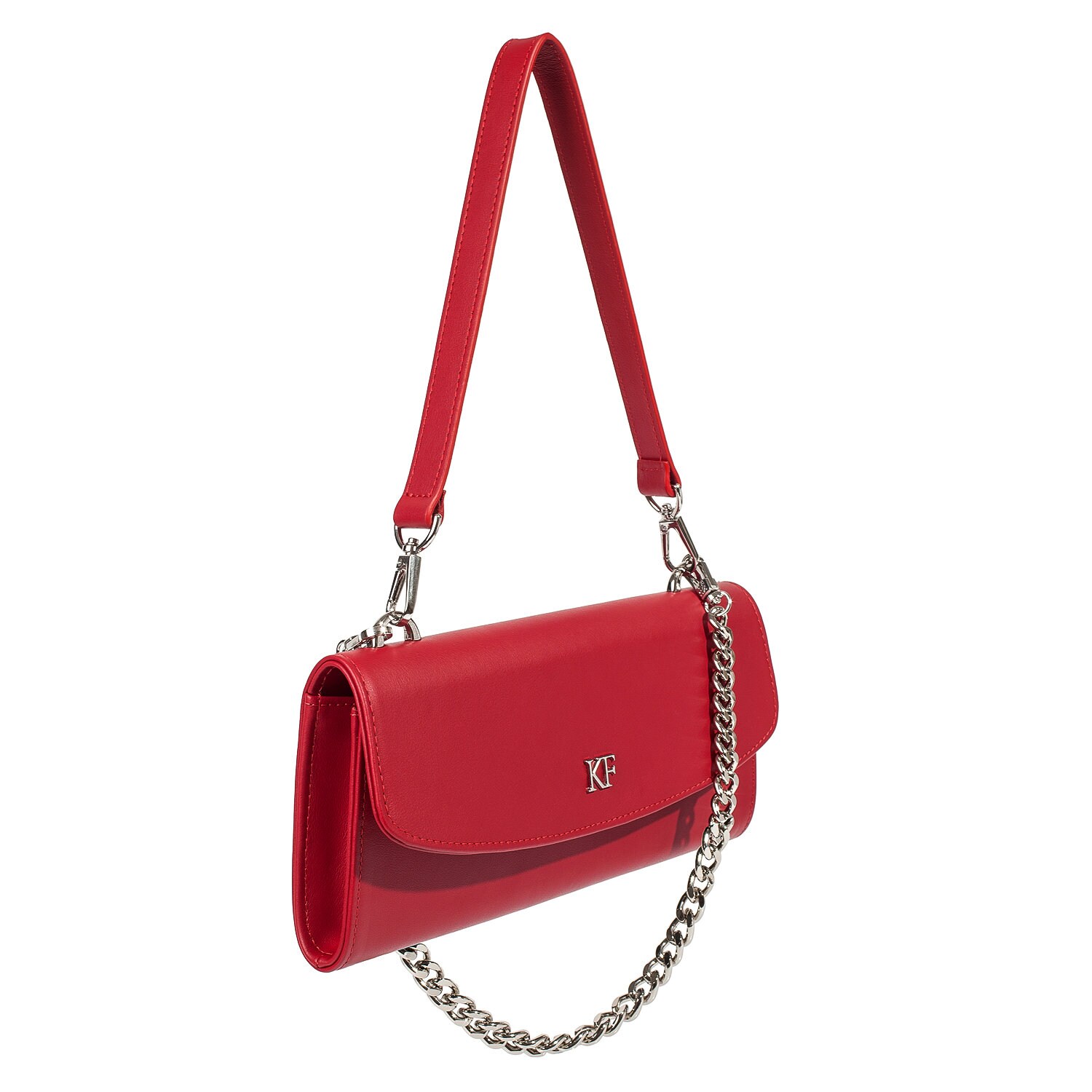 Red genuine leather woman shoulder bag from Ukrainian designer Katerina Fox. Fashionable and elegant modern bag KF for bright girls and women. This bag is able to attract attention and highlight your exquisite taste. Inside the bag is one compartment and a convenient zippered pocket for small items closes the bag on the button magnet. The bag is comfortable to wear on the shoulder or the wrist.