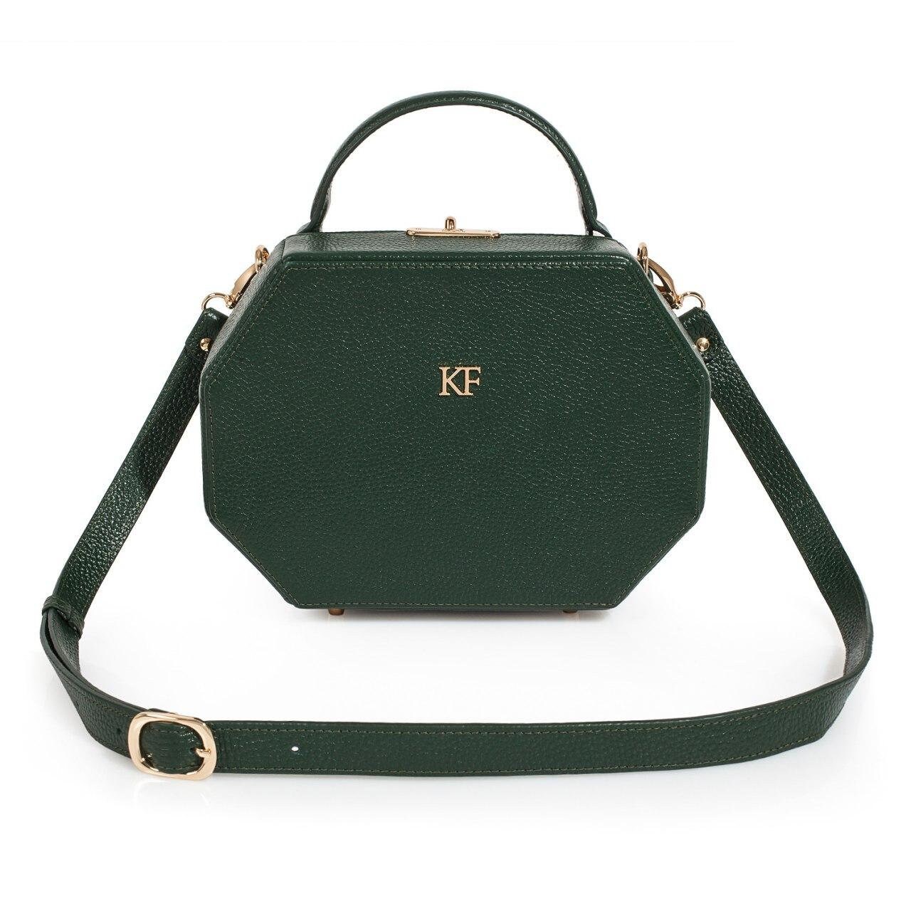 Leather Boxbag, Dark green Leather Box Bag, Women's Leather Boxbag, Leather bag KF-3202