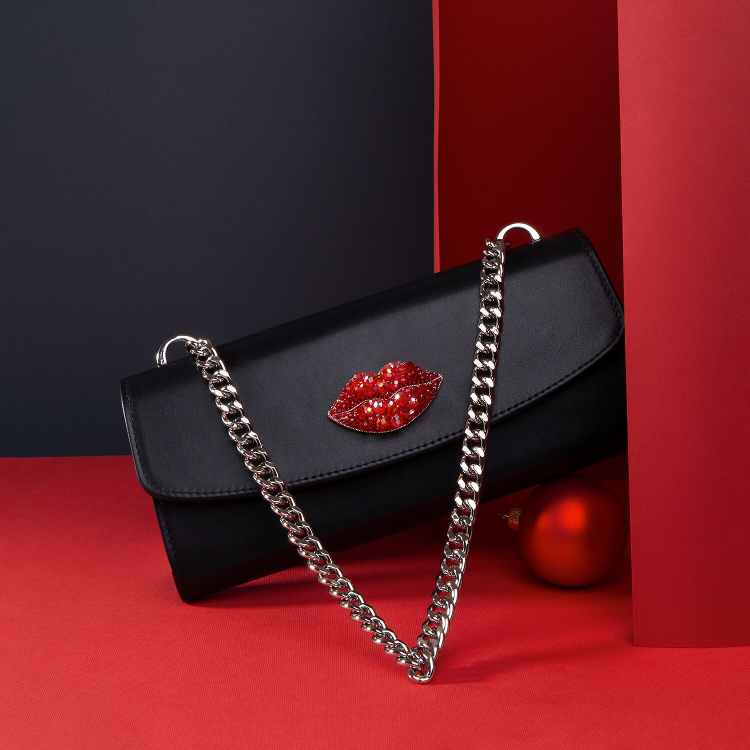 Black genuine leather woman shoulder bag from ukrainian designer Katerina Fox. Stylish bag-clutch rectangular black with gold chain is perfect for evening dress for any cocktail dress. This bag-the clutch will add your elegance and luxury. Inside the bag one large compartment, one pocket with zipper that closes with a button magnet.