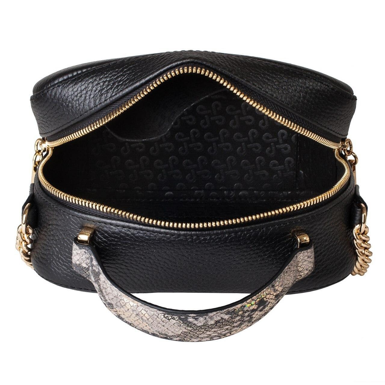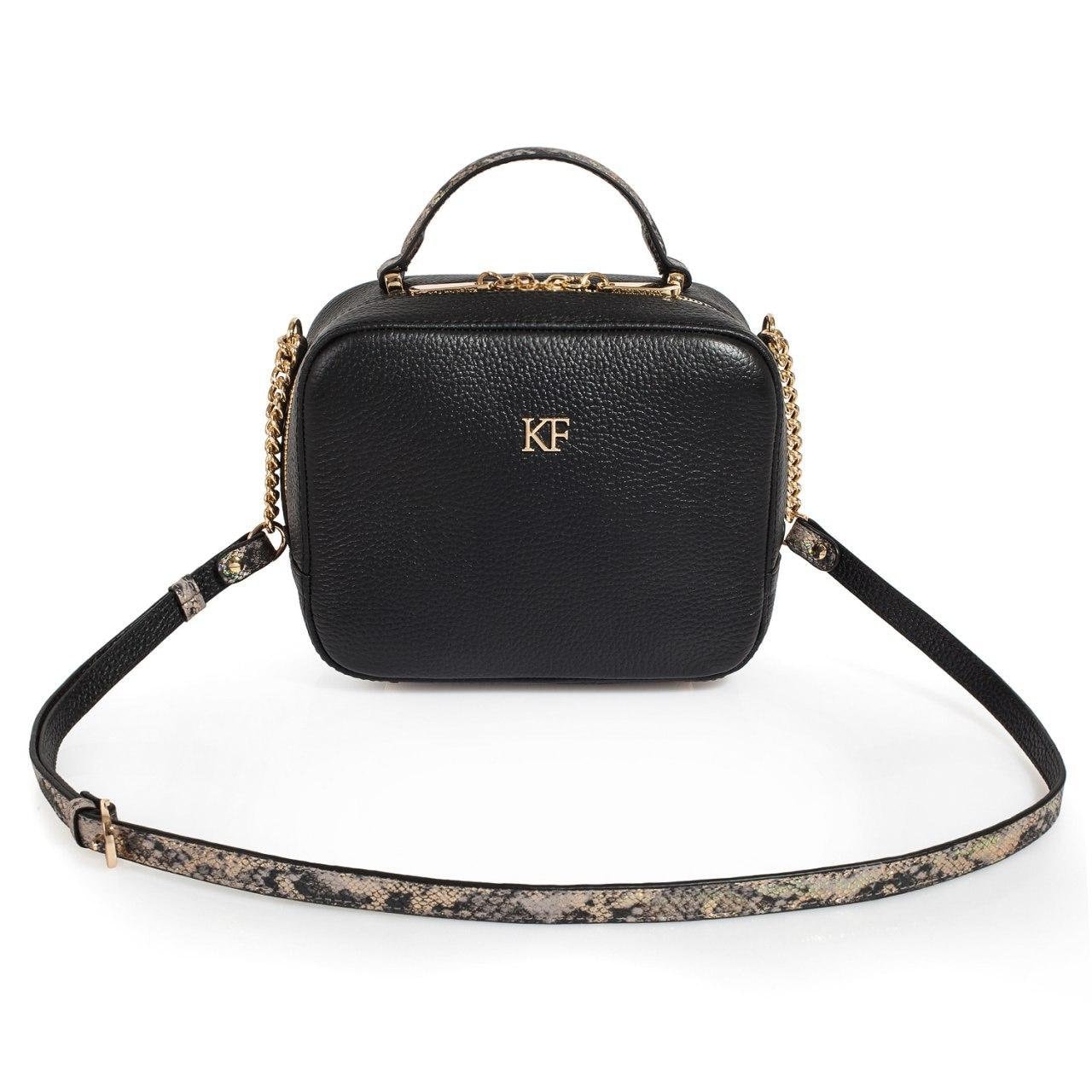 Black genuine leather woman shoulder bag from ukrainian designer Katerina Fox. Fashionable and elegant modern bag KF for bright girls and women. This bag is able to attract attention and highlight your exquisite taste. The internal space of a bag is equipped with one spacious compartment and one zipper pocket. The bag is closed with a zipper. The length of the strap is adjustable. The kit also includes a storage bag.