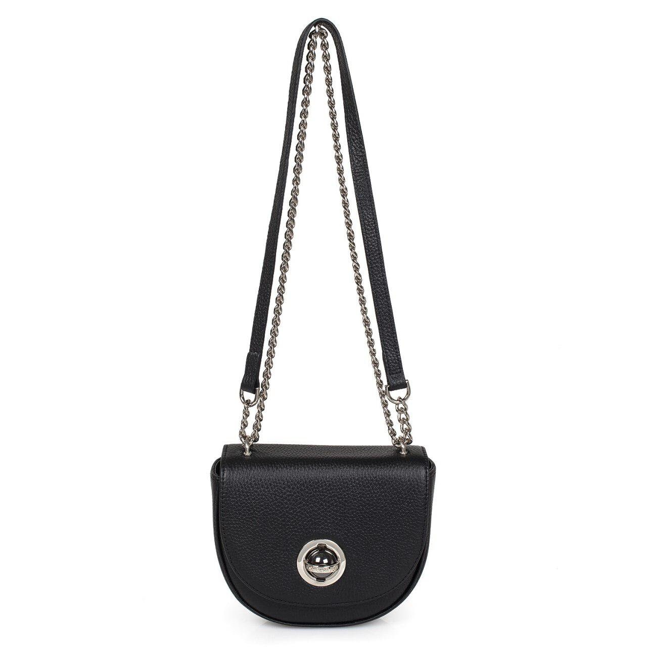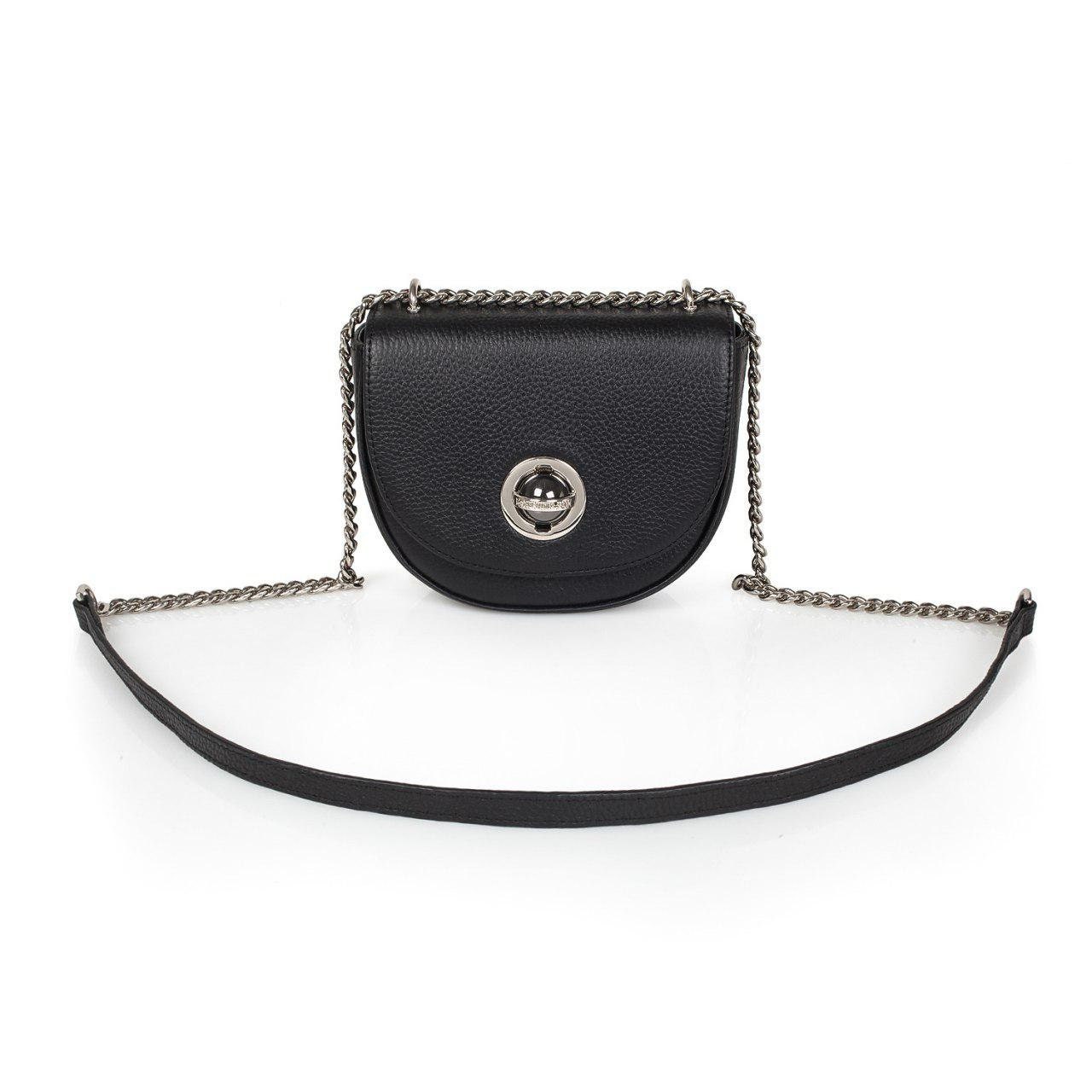 Black genuine leather woman shoulder bag from ukrainian designer Katerina Fox. Fashionable and elegant modern bag KF for bright girls and women. This bag is able to attract attention and highlight your exquisite taste. The internal space of a bag is equipped with one spacious compartment and one patch-pocket. The bag is closed with a clasp. There is a long handle that allows you to wear the bag on the shoulder. The kit also includes a storage bag.