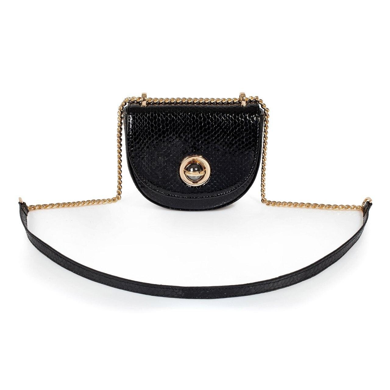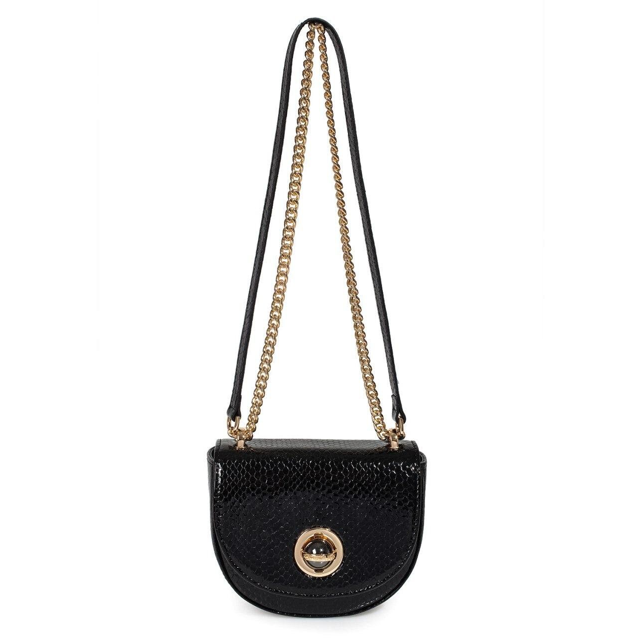 Black patent genuine leather snake print woman shoulder bag from ukrainian designer Katerina Fox. Fashionable and elegant modern bag KF for bright girls and women. This bag is able to attract attention and highlight your exquisite taste. The internal space of a bag is equipped with one spacious compartment and one patch-pocket. The bag is closed with a clasp. There is a long handle that allows you to wear the bag on the shoulder. The kit also includes a storage bag.