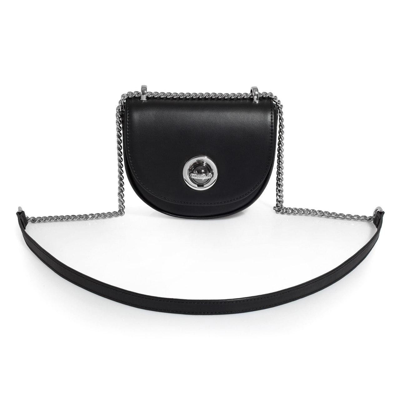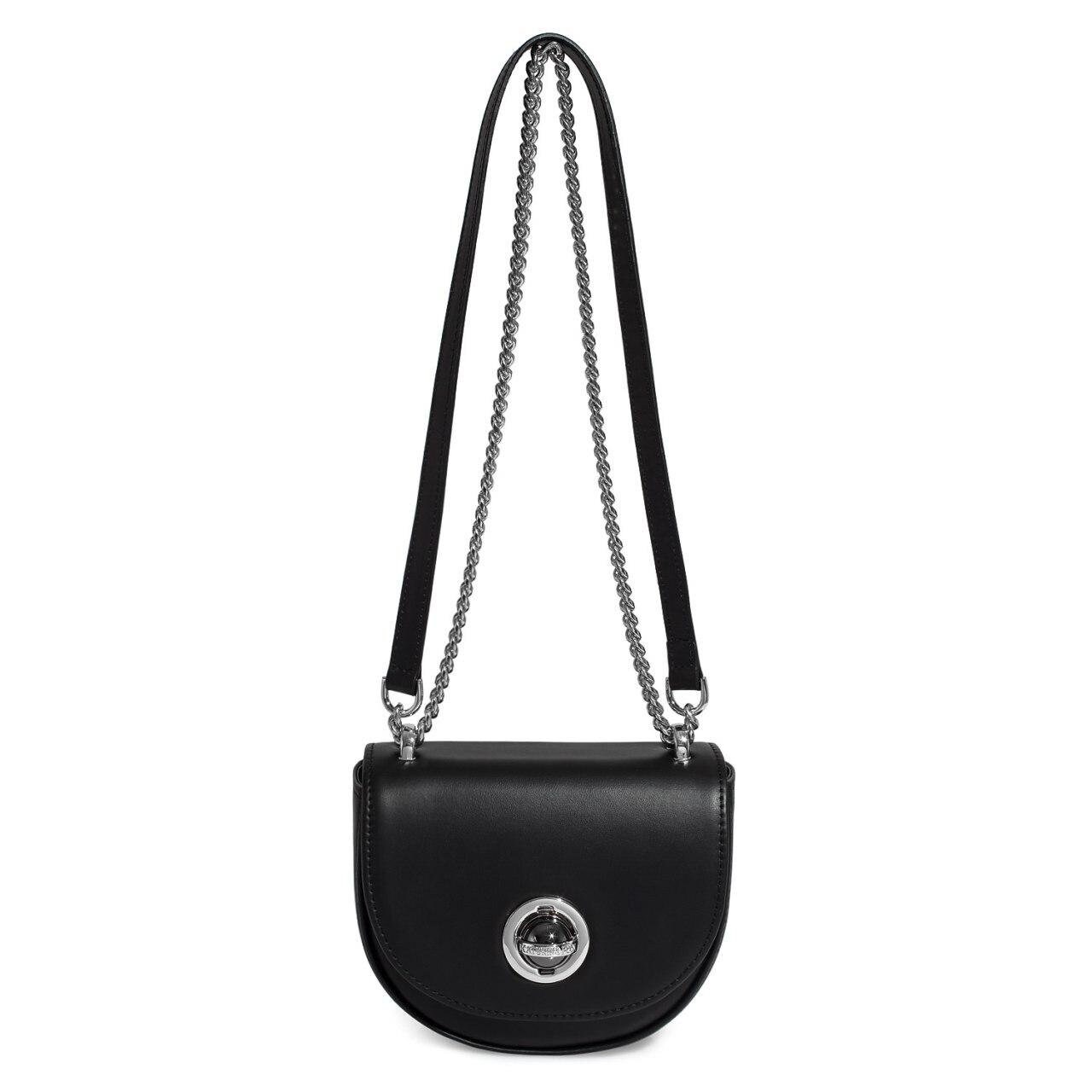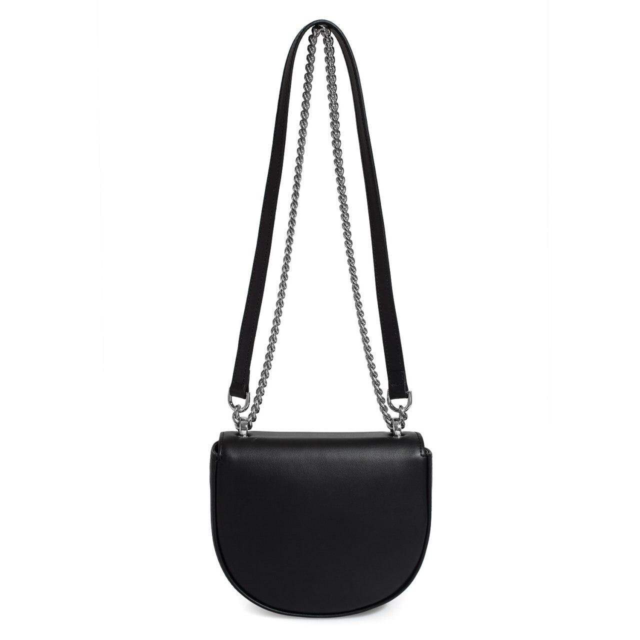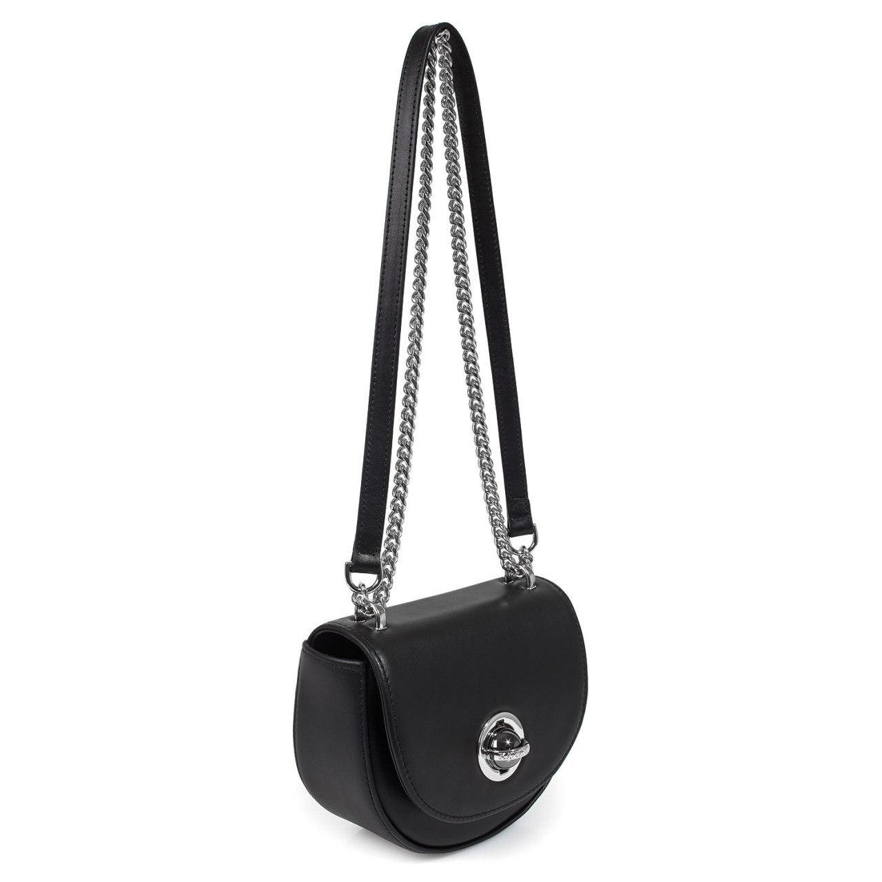 Black genuine leather woman shoulder bag from ukrainian designer Katerina Fox. Fashionable and elegant modern bag KF for bright girls and women. This bag is able to attract attention and highlight your exquisite taste. The internal space of a bag is equipped with one spacious compartment and one patch-pocket. The bag is closed with a clasp. There is a long handle that allows you to wear the bag on the shoulder. The kit also includes a storage bag.