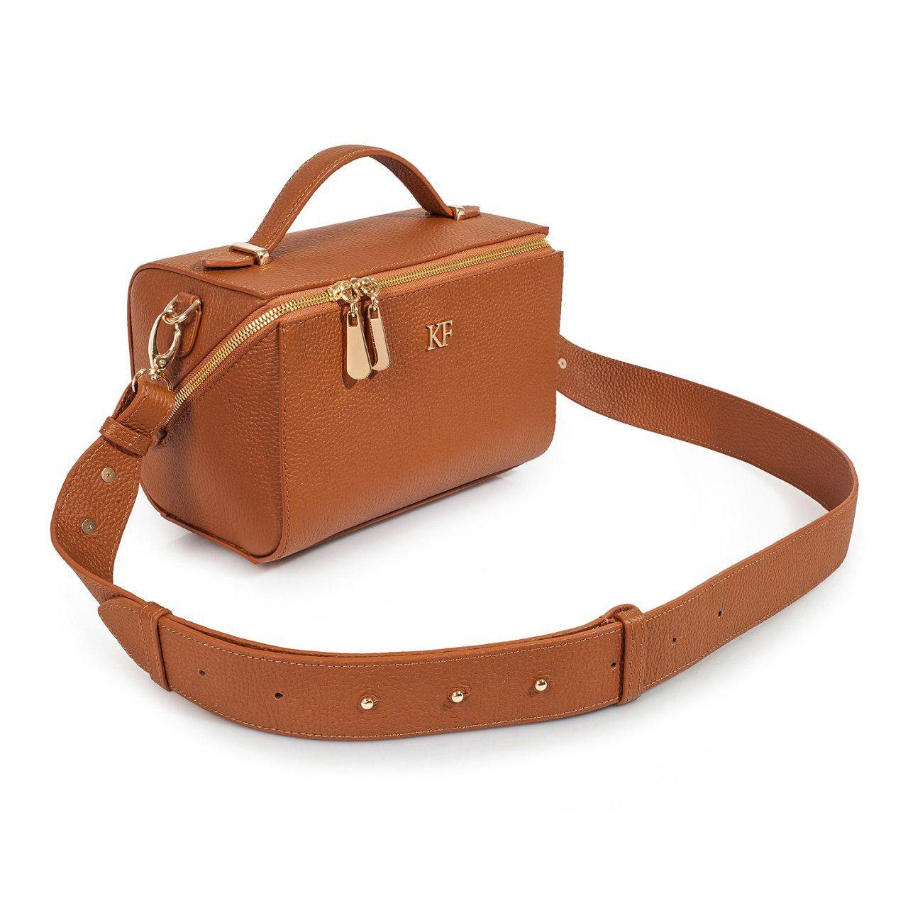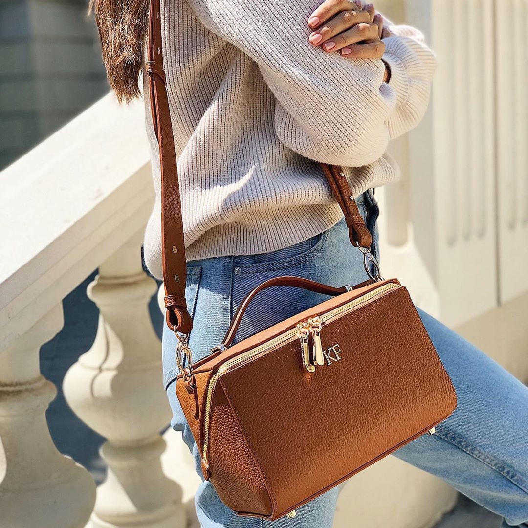 Ginger genuine leather woman shoulder bag from ukrainian designer Katerina Fox. Fashionable and elegant modern bag KF for bright girls and women. This bag is able to attract attention and highlight your exquisite taste. The internal space of a bag is equipped with one spacious compartment and one zipper pocket. The bag is closed with a zipper. The length of the strap is adjustable. The kit also includes a storage bag.