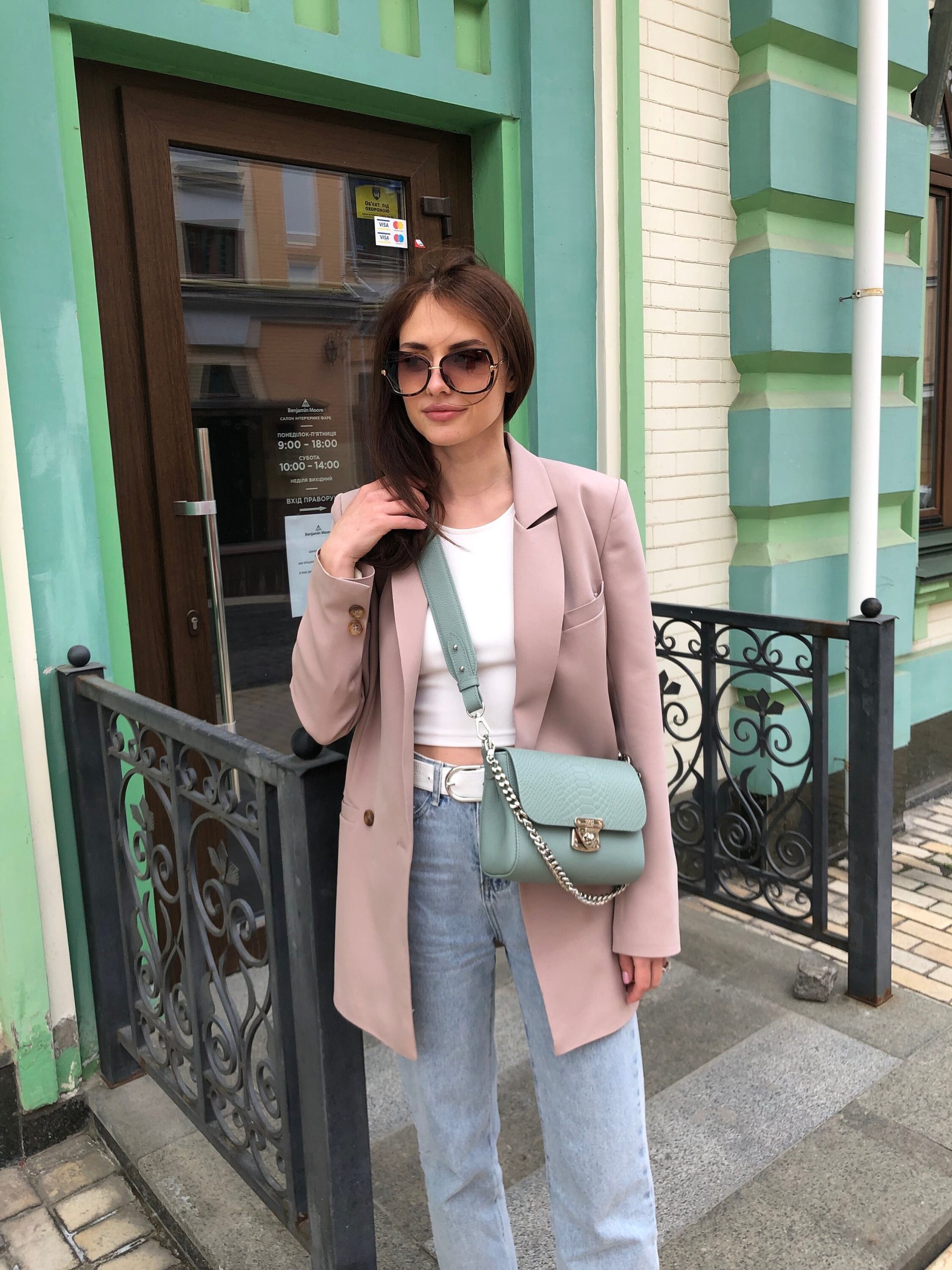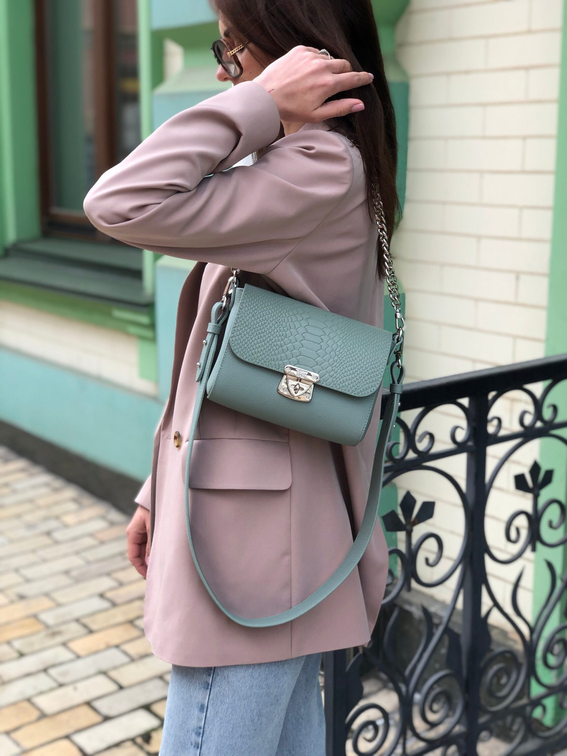 Mint genuine leather woman shoulder bag from ukrainian designer Katerina Fox. Fashionable and elegant modern bag KF for bright girls and women. This bag is able to attract attention and highlight your exquisite taste. Inside the bag is one large compartment and a convenient zippered pocket for small items, closes the bag on the clasp. The bag is comfortable to wear on the shoulder or across the shoulder.