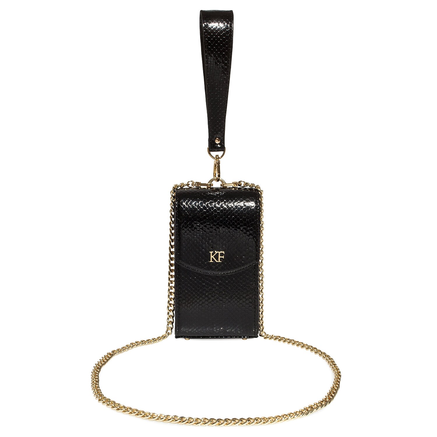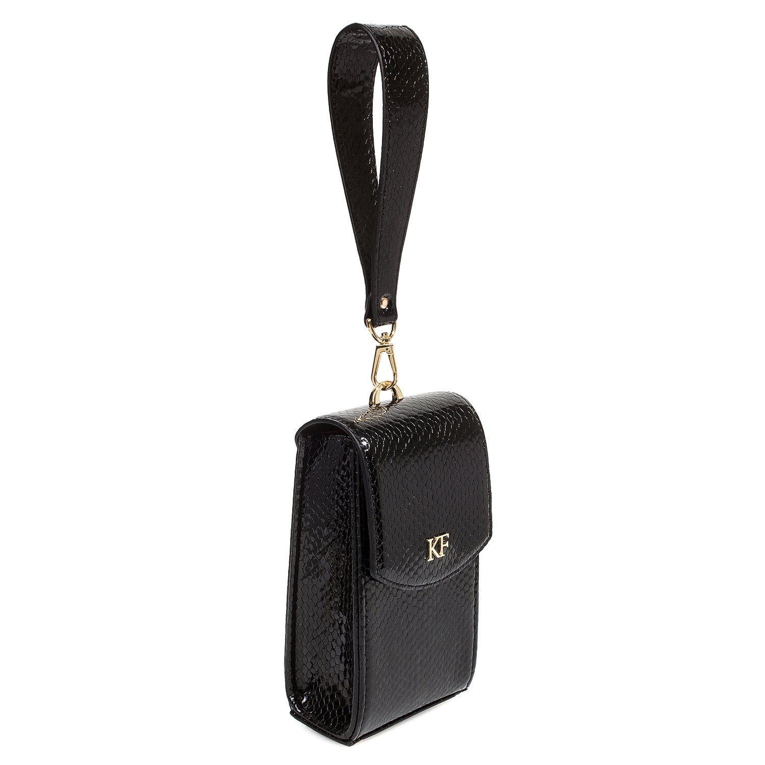 Black patent genuine leather woman crossbody bag from Ukrainian designer Katerina Fox. Fashionable and elegant modern bag KF for bright girls and women. This bag is able to attract attention and highlight your exquisite tastes. The internal space of a bag is equipped with one spacious compartment, four patch pockets for cards. The bag is closed on the button-magnet. The kit also includes a storage bag.