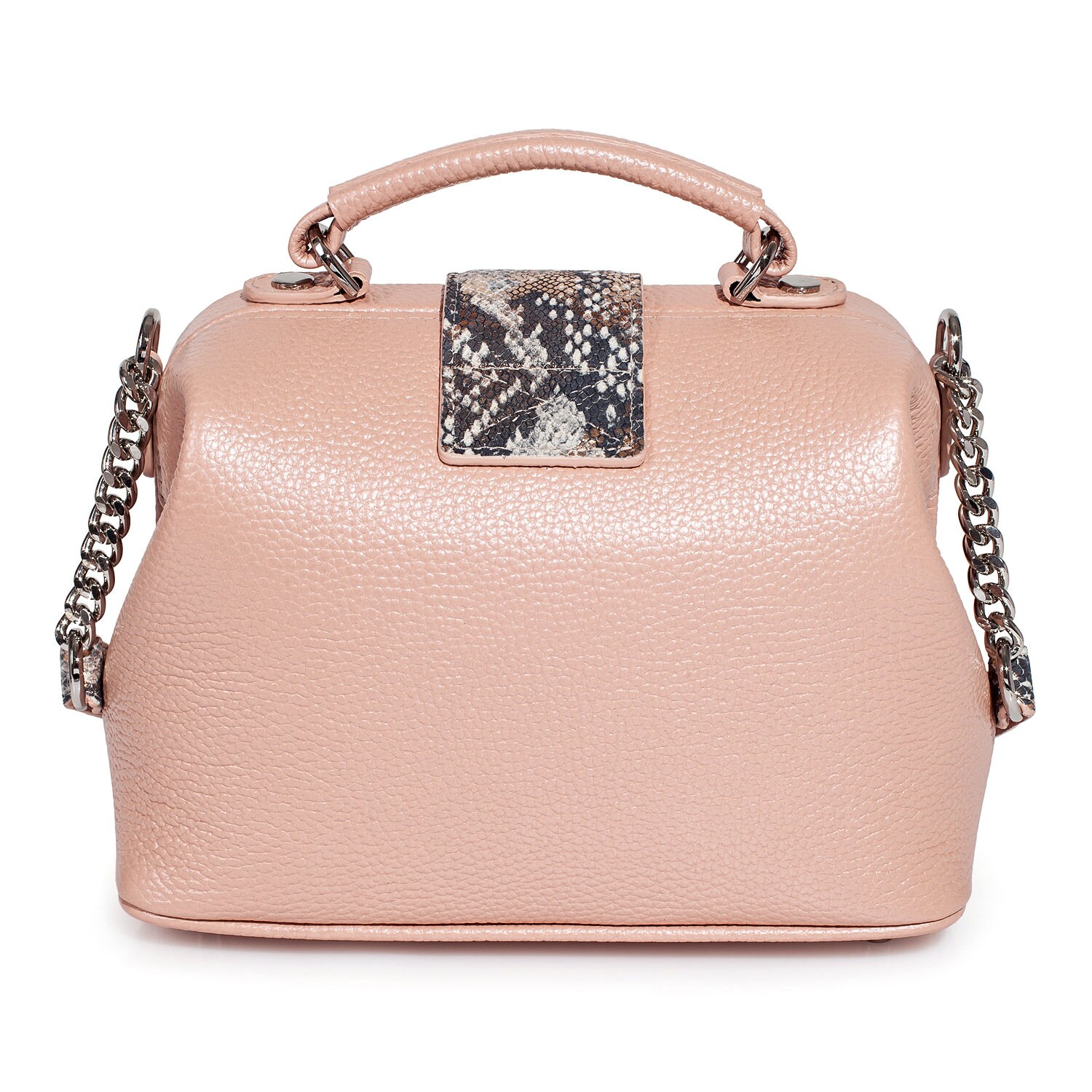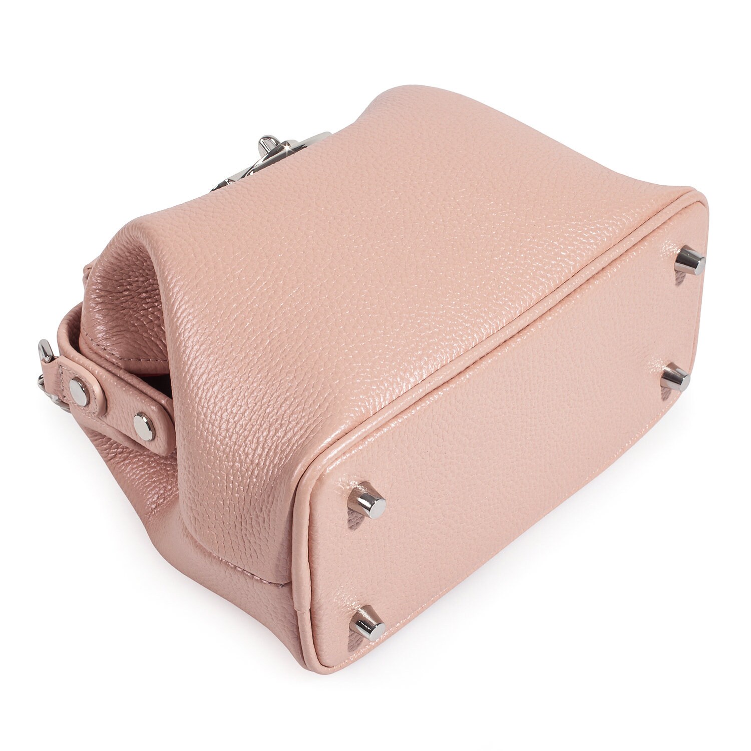 Beige pearl genuine leather handbag from ukrainian designer Katerina Fox. This model is designed for women who appreciate the sleek design combined with functionality and comfort. High-quality and reliable hardware ensure long service bags. The internal space of a bag is equipped with one spacious compartment and two patch-pockets and one zipper pocket. The bag is closed with a clasp. The bottom of the bag is protected with metal legs. There is a long handle that allows you to wear the bag on the shoulder. The kit also includes a storage bag.