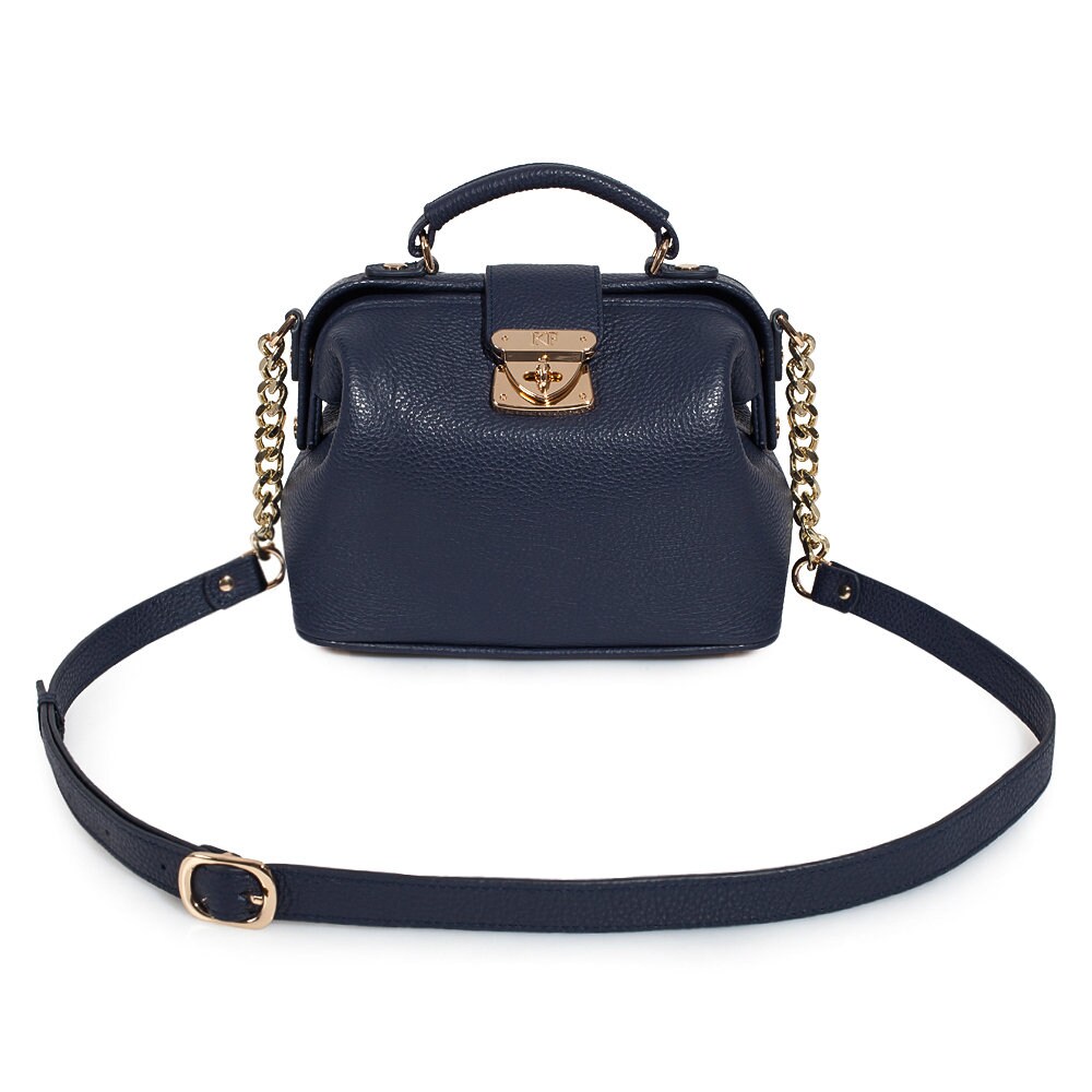 Leather doctor bag for women, Navy Blue Leather Shoulder Bag, Women's Leather doctor bag, Leather bag KF-3443