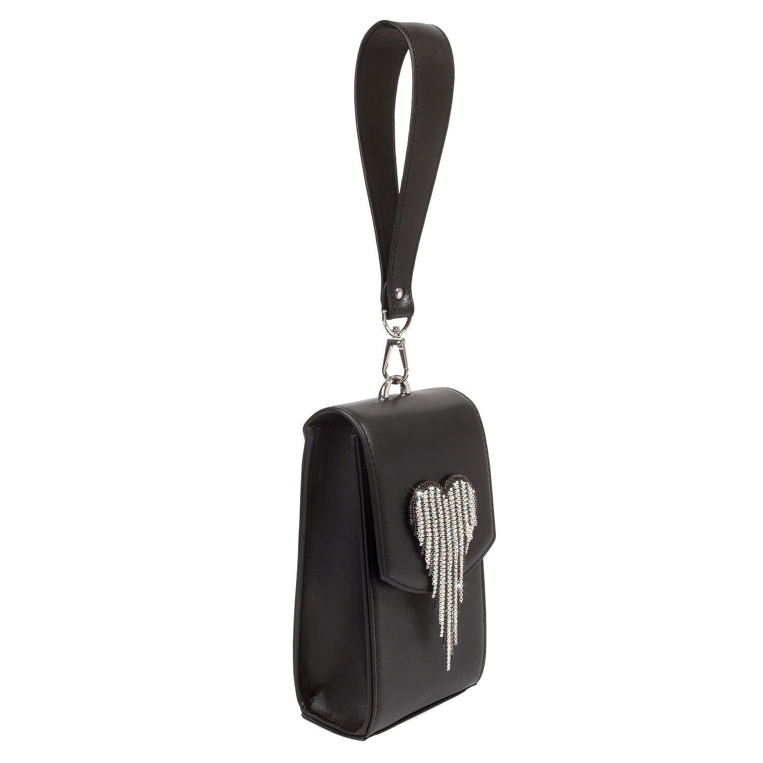 Black genuine leather woman crossbody bag from Ukrainian designer Katerina Fox. Fashionable and elegant modern bag KF for bright girls and women. This bag is able to attract attention and highlight your exquisite tastes. The internal space of a bag is equipped with one spacious compartment, four patch pockets for cards. The bag is closed on the button-magnet. The kit also includes a storage bag.