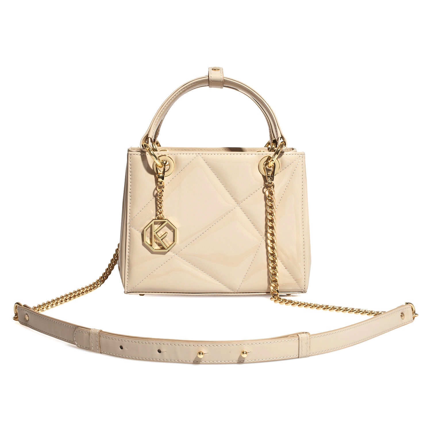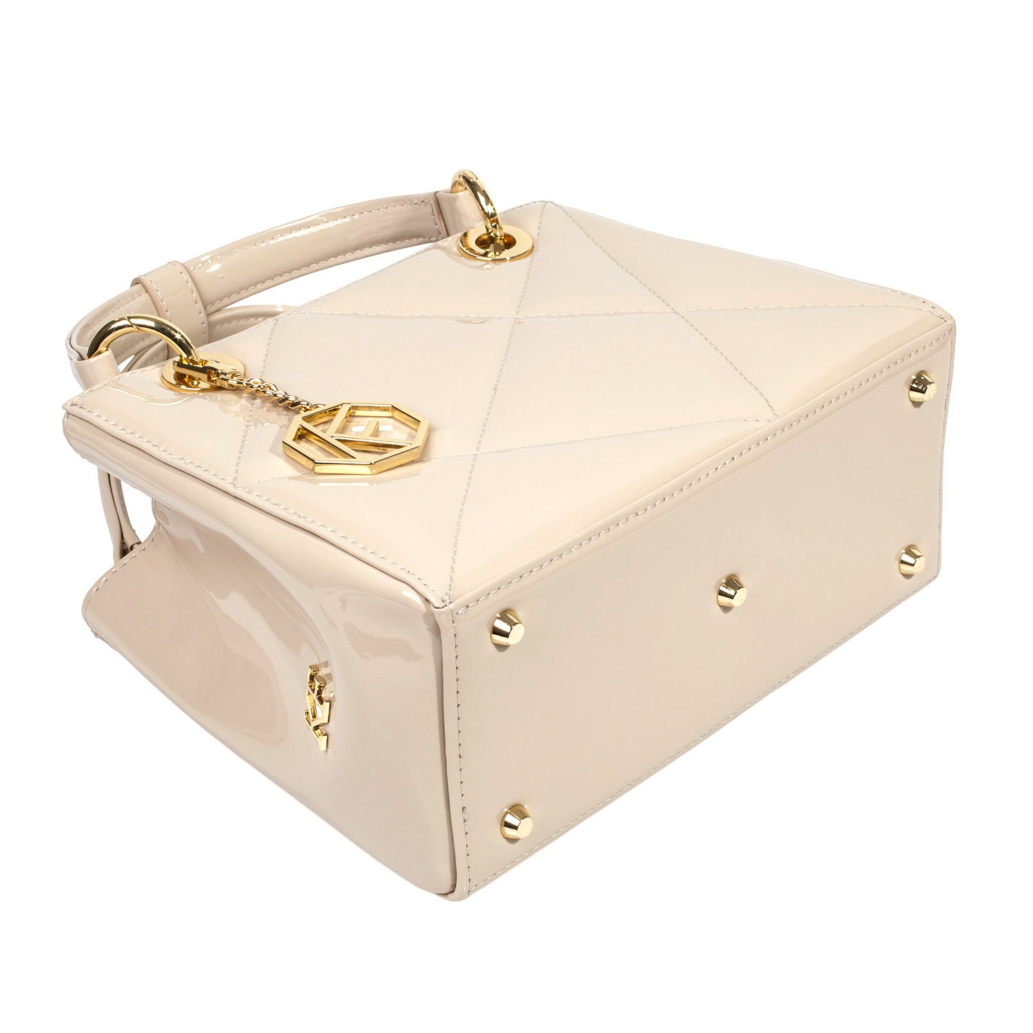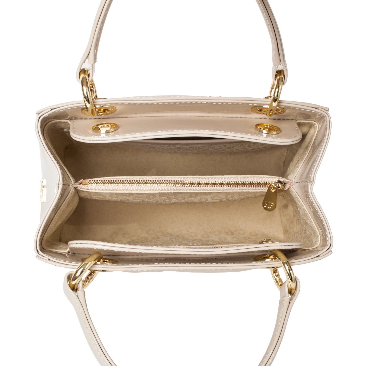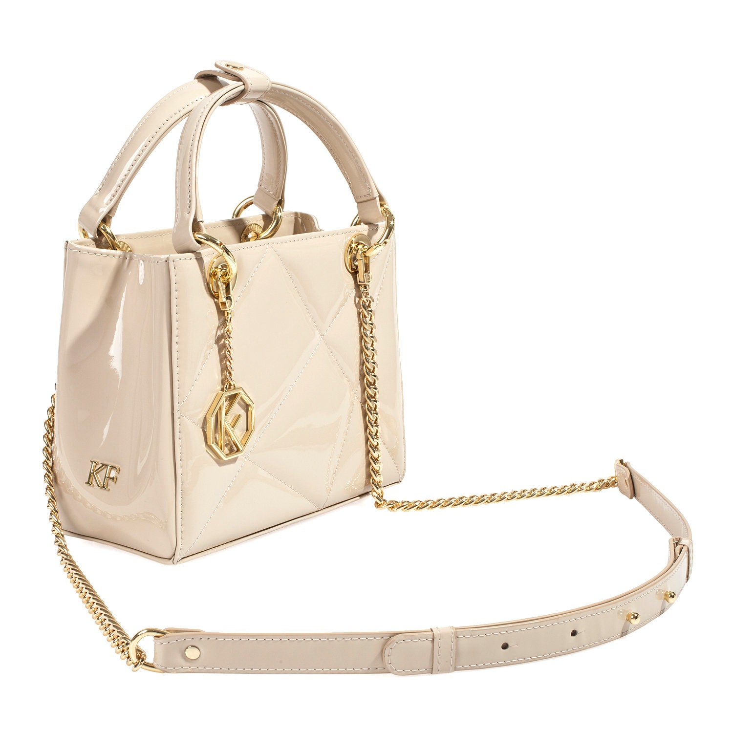 Women's leather bag made of genuine leather, hardware with galvanic coating and microfiber lining. The internal space of a bag is equipped with three spacious compartments and two patch-pockets and one zipper pocket. Closes with 2 buttons magnet. The bottom of the bag is protected with metal legs. The kit also includes a storage bag.