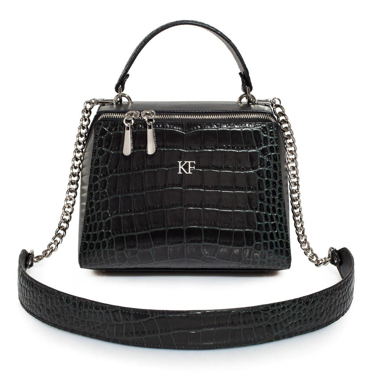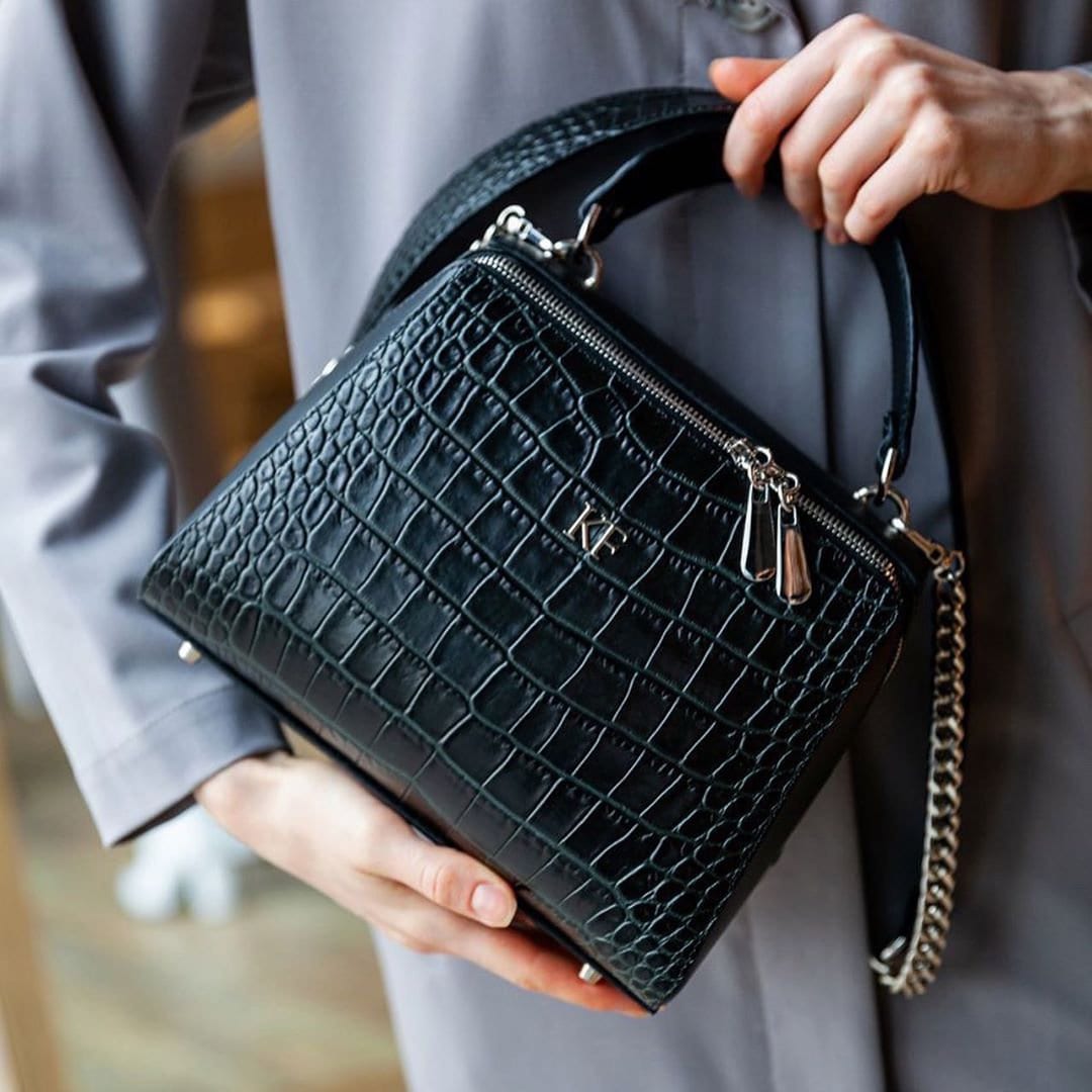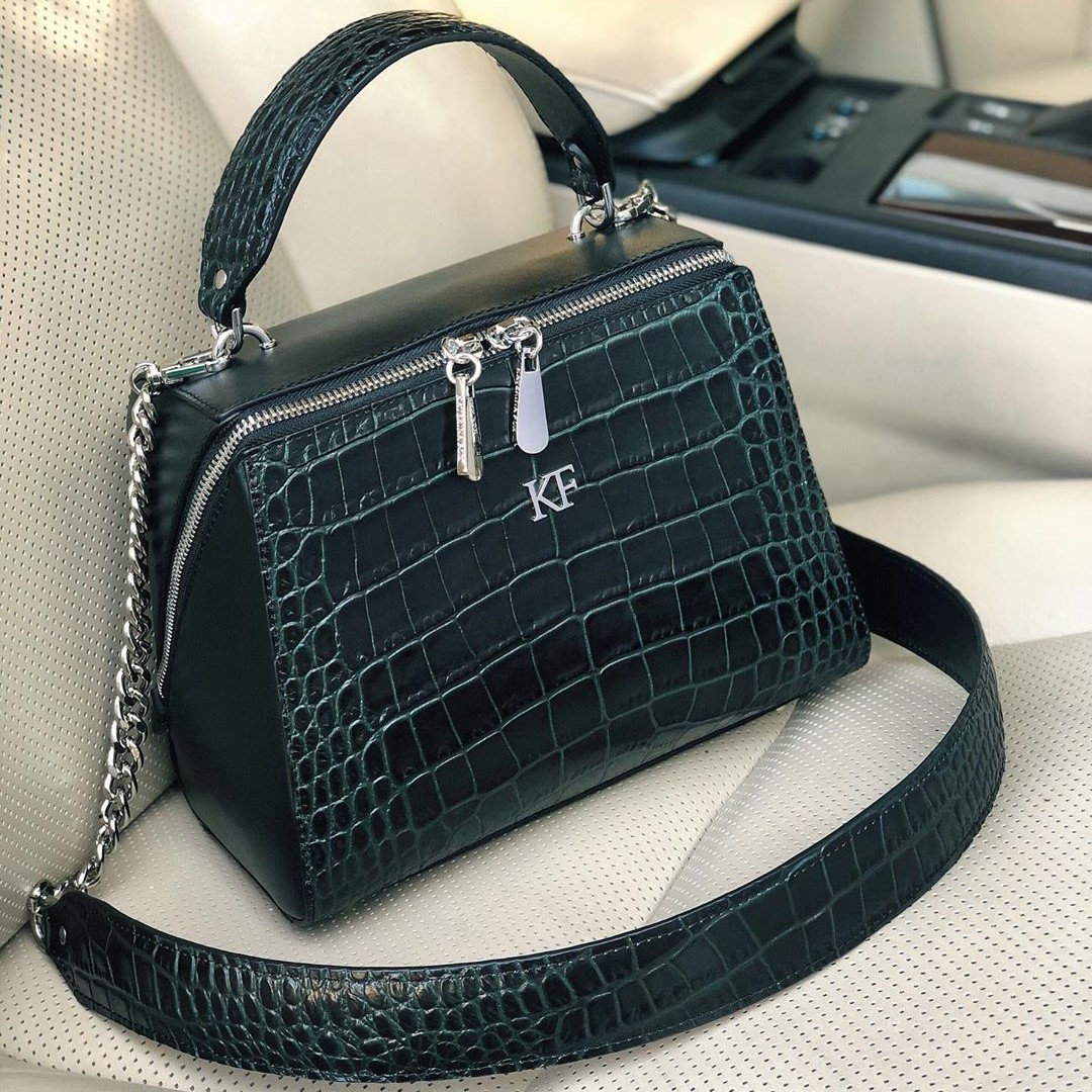 Finish: dark green genuine leather crocodile print
