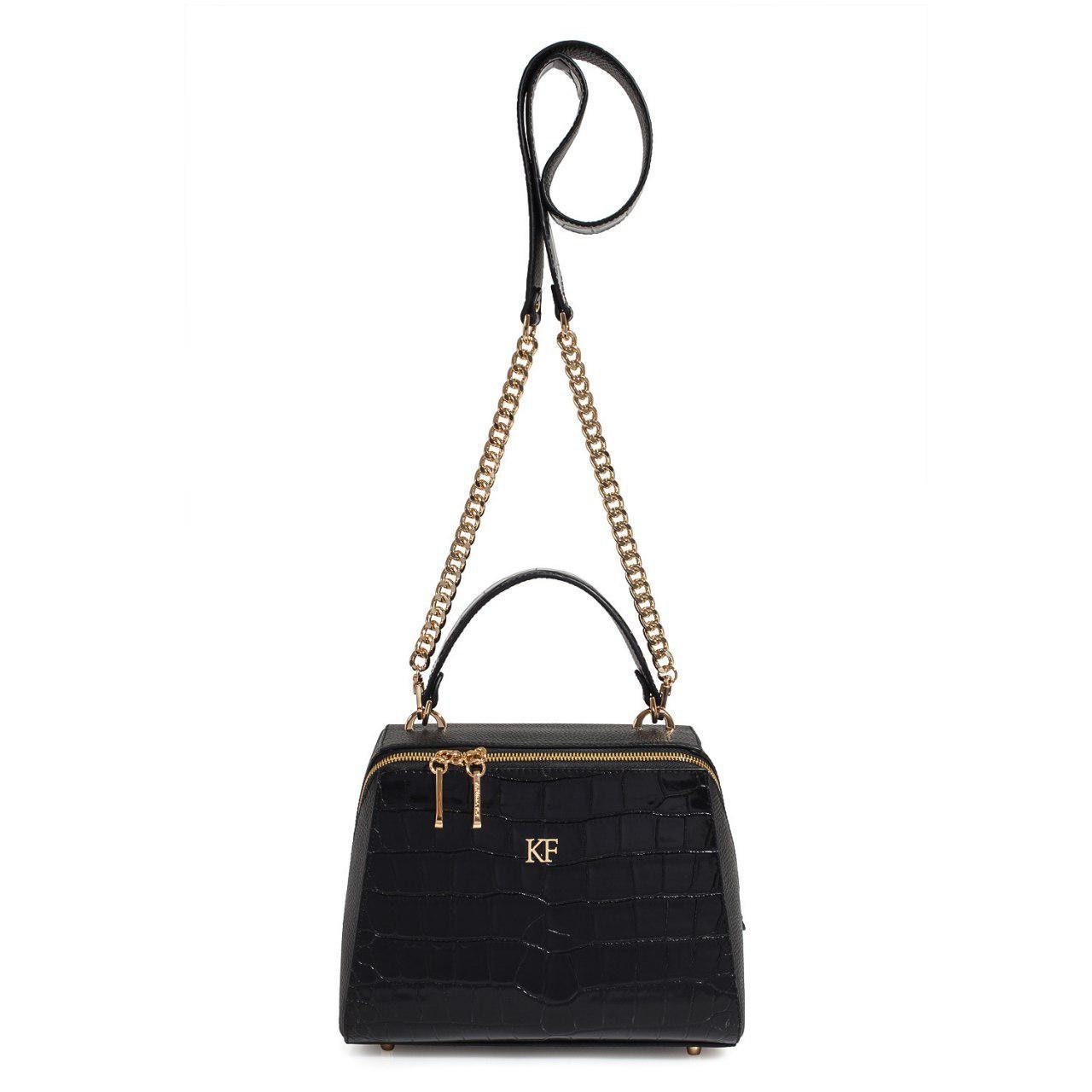 Leather Top Handle Bag, Black Leather Handbag Top Handle, Women's Leather Bag KF-3105
