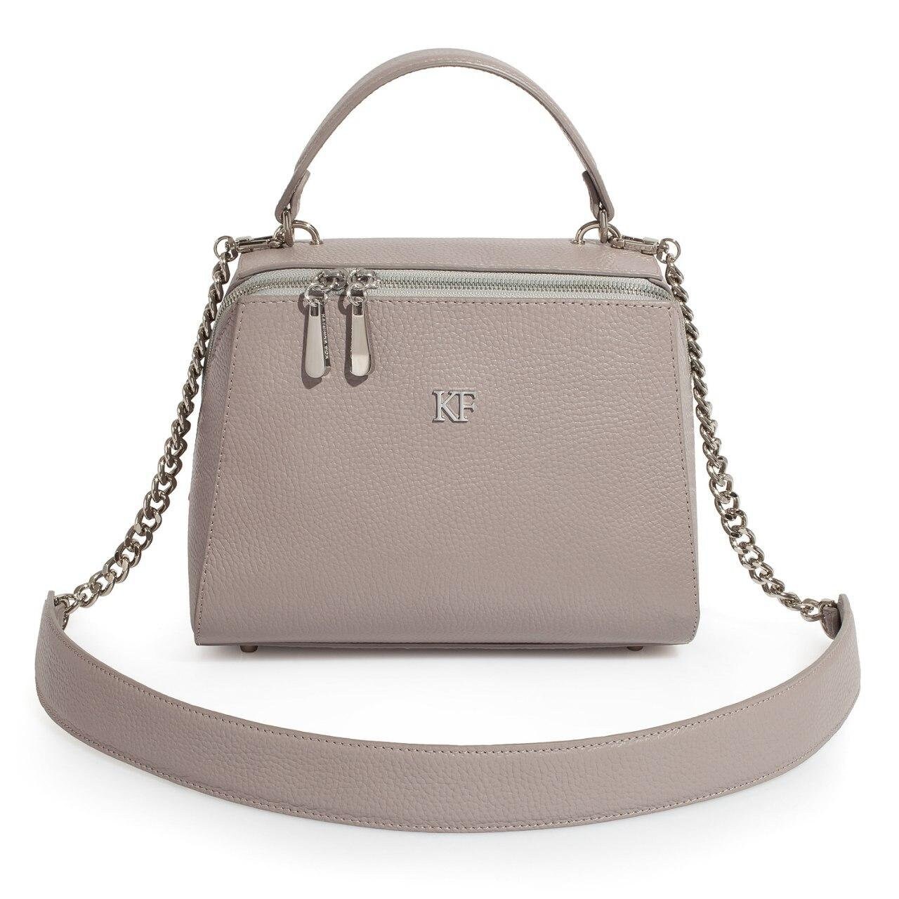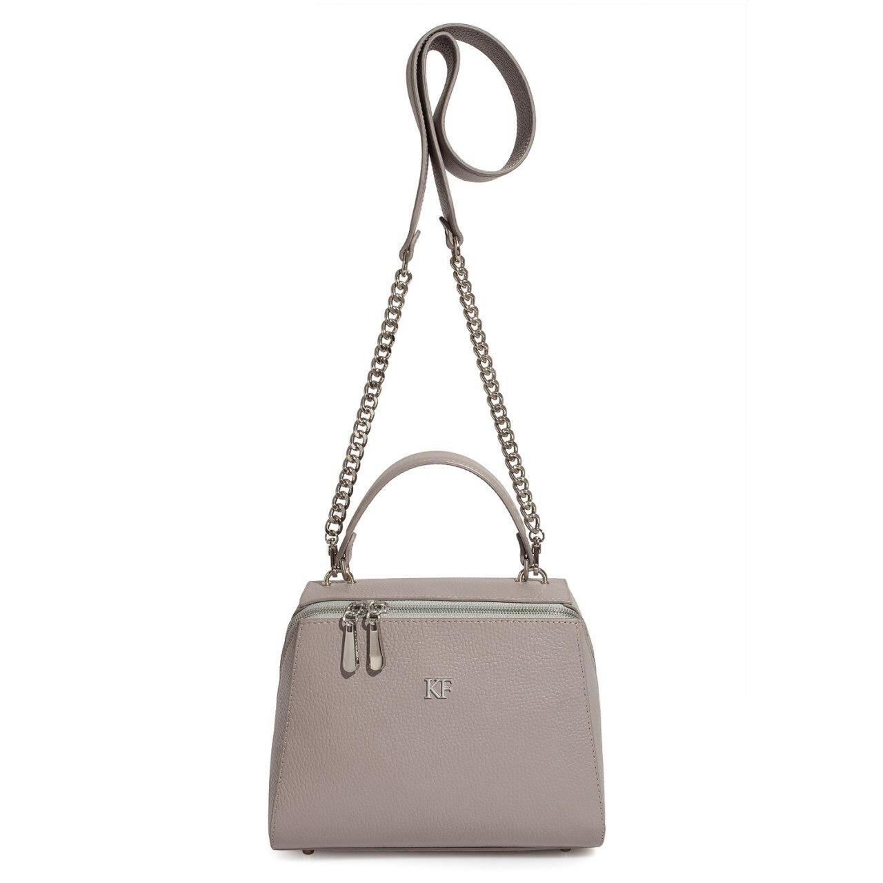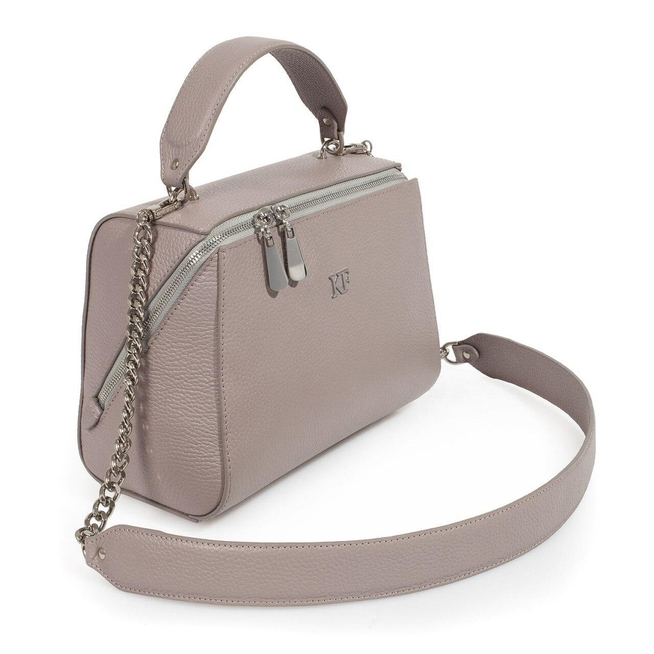 Grey Beige genuine leather handbag from ukrainian designer Katerina Fox. This model is designed for women who appreciate the sleek design combined with functionality and comfort. High-quality and reliable hardware ensure long service bags. The internal space of a bag is equipped with one spacious compartment and two patch-pockets and one zipper pocket. The bag is closed with a zipper. The bottom of the bag is protected with metal legs. There is a long handle that allows you to wear the bag on the shoulder. The kit also includes a storage bag.