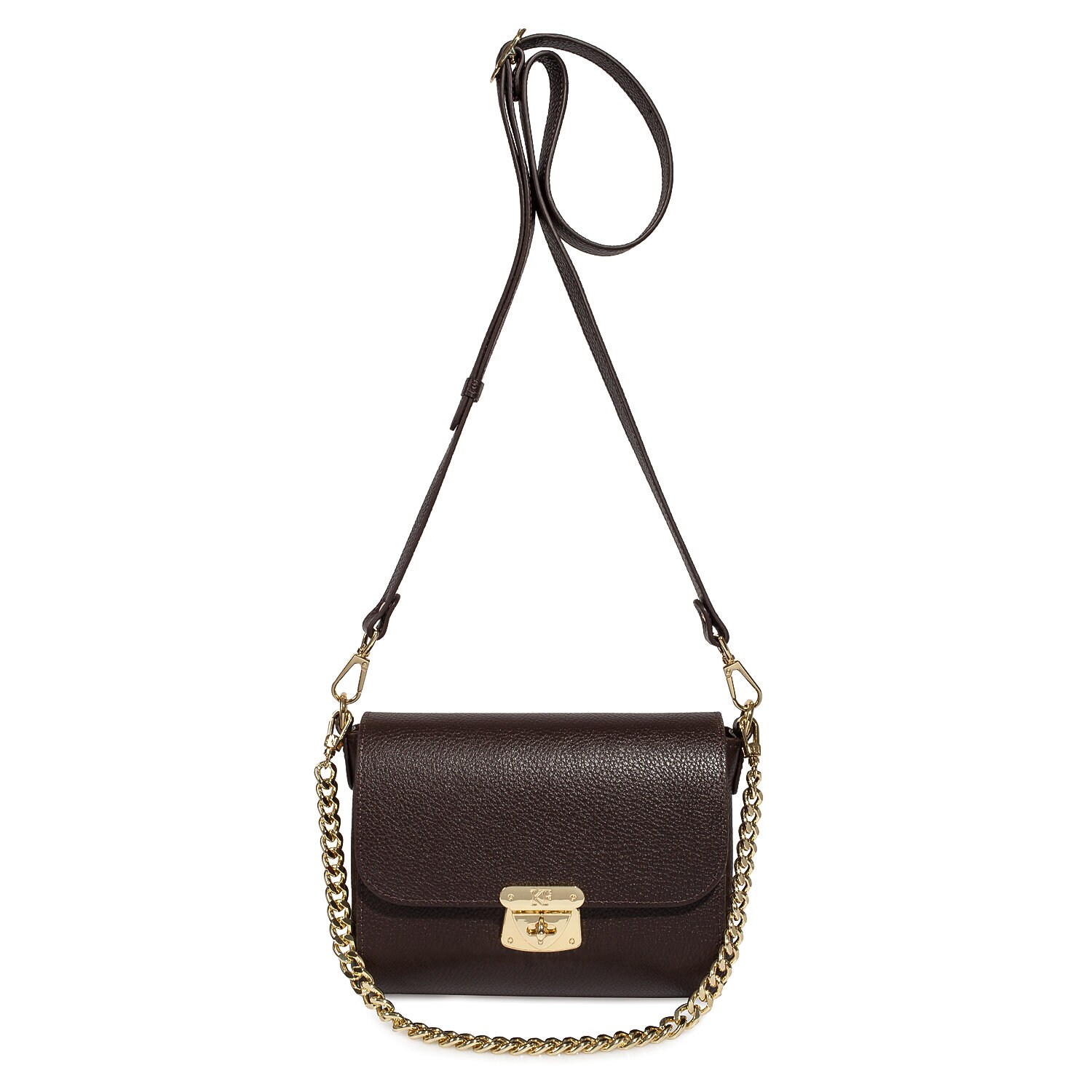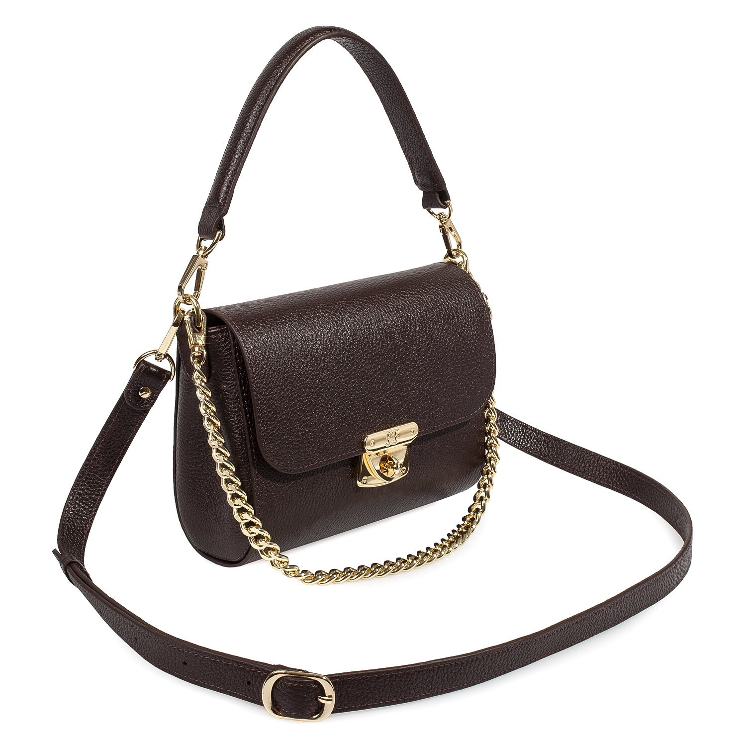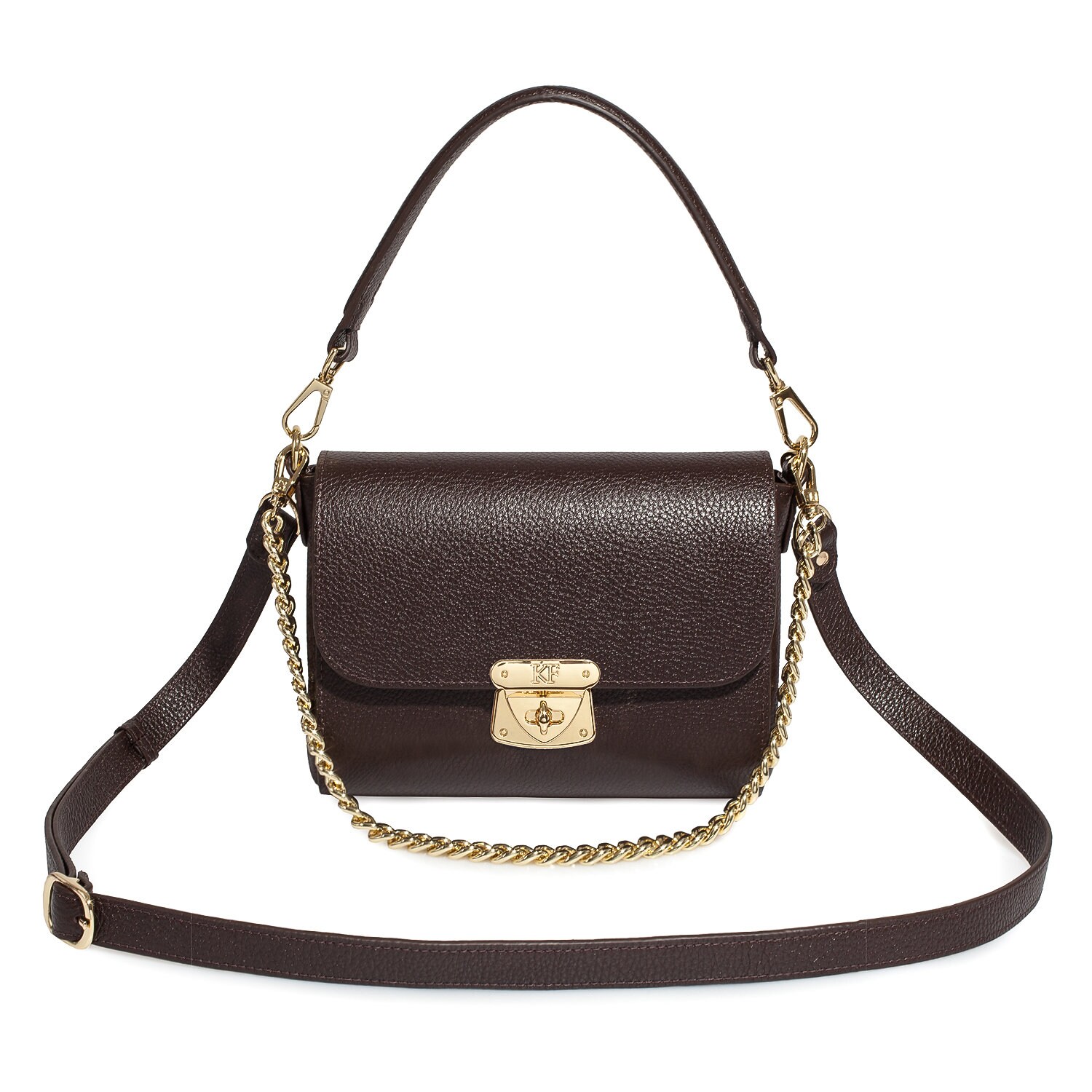Brown genuine leather woman shoulder bag from Ukrainian designer Katerina Fox. Fashionable and elegant modern bag KF for bright girls and women. This bag is able to attract attention and highlight your exquisite taste. Inside the bag is one large compartment and a convenient zippered pocket for small items closes the bag on the clasp. The bag is comfortable to wear on the shoulder or across the shoulder.