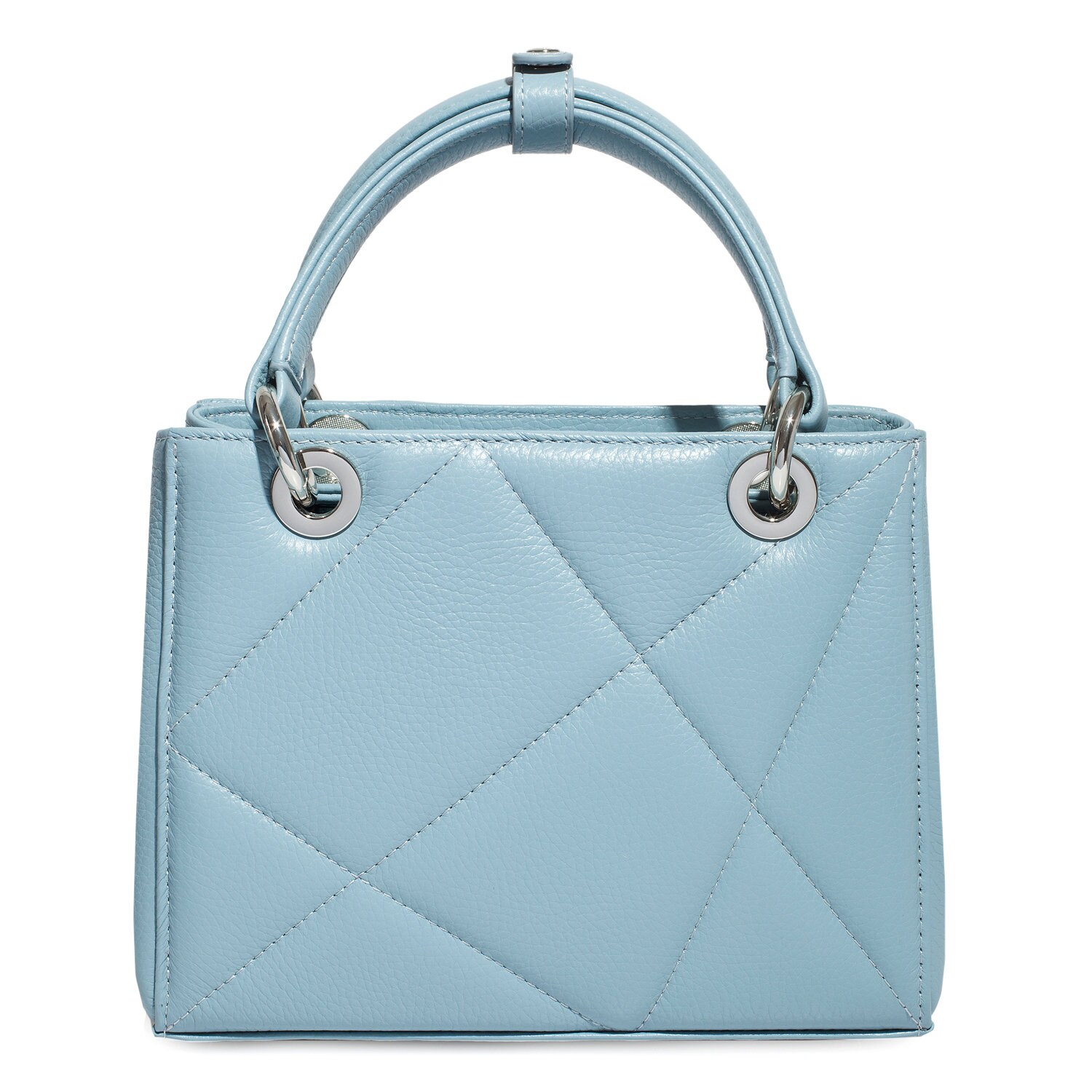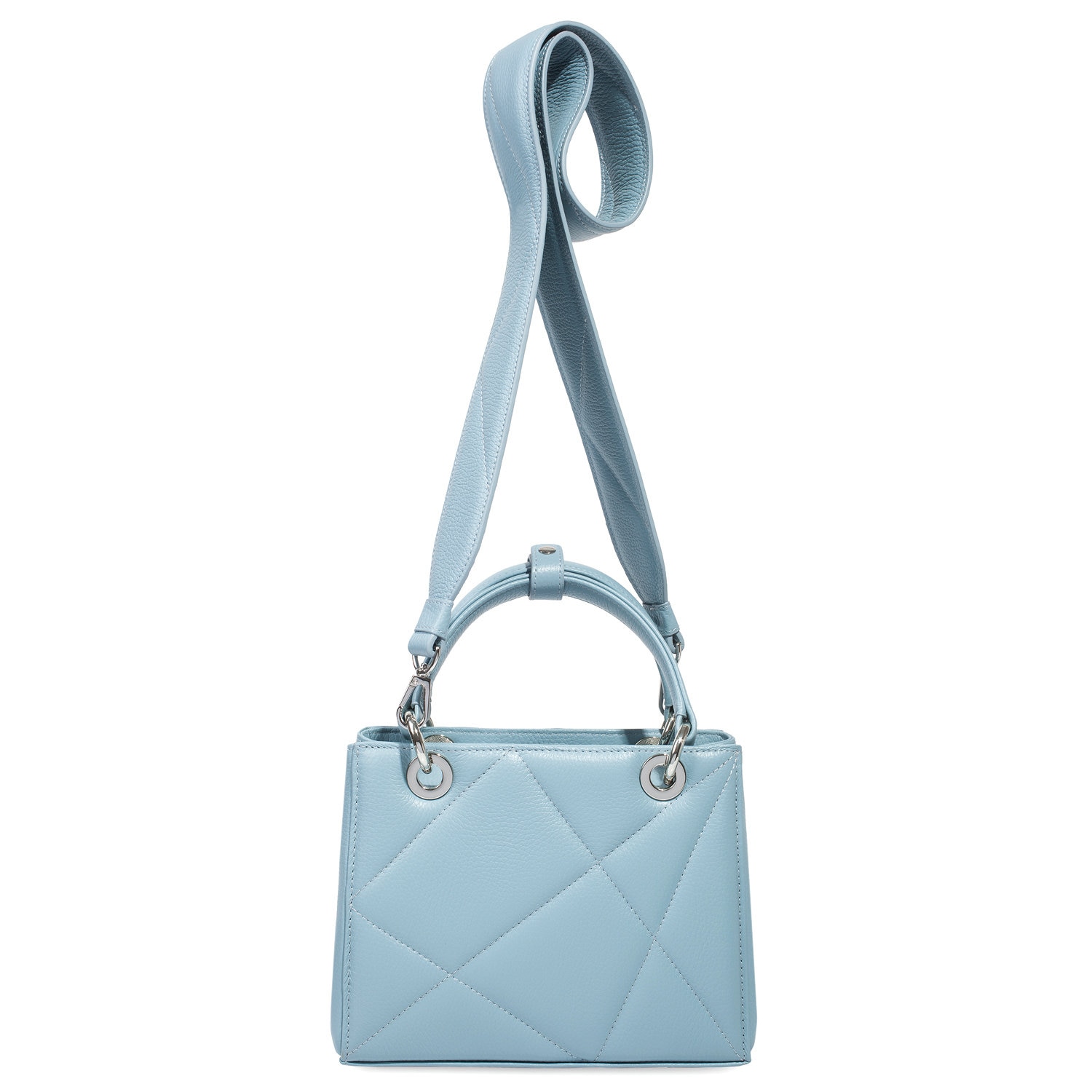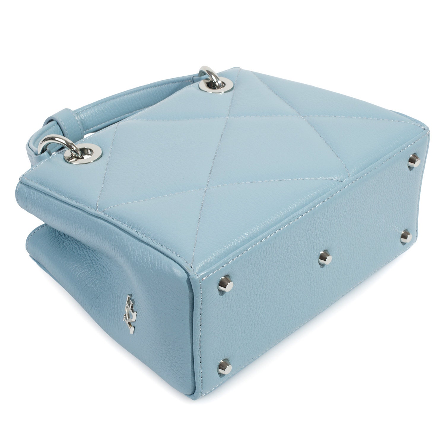 Women's leather bag made of genuine leather, hardware with galvanic coating and microfiber lining. The internal space of a bag is equipped with three spacious compartments and two patch-pockets and one zipper pocket. Closes with 2 buttons magnet. The bottom of the bag is protected with metal legs. The kit also includes a storage bag.