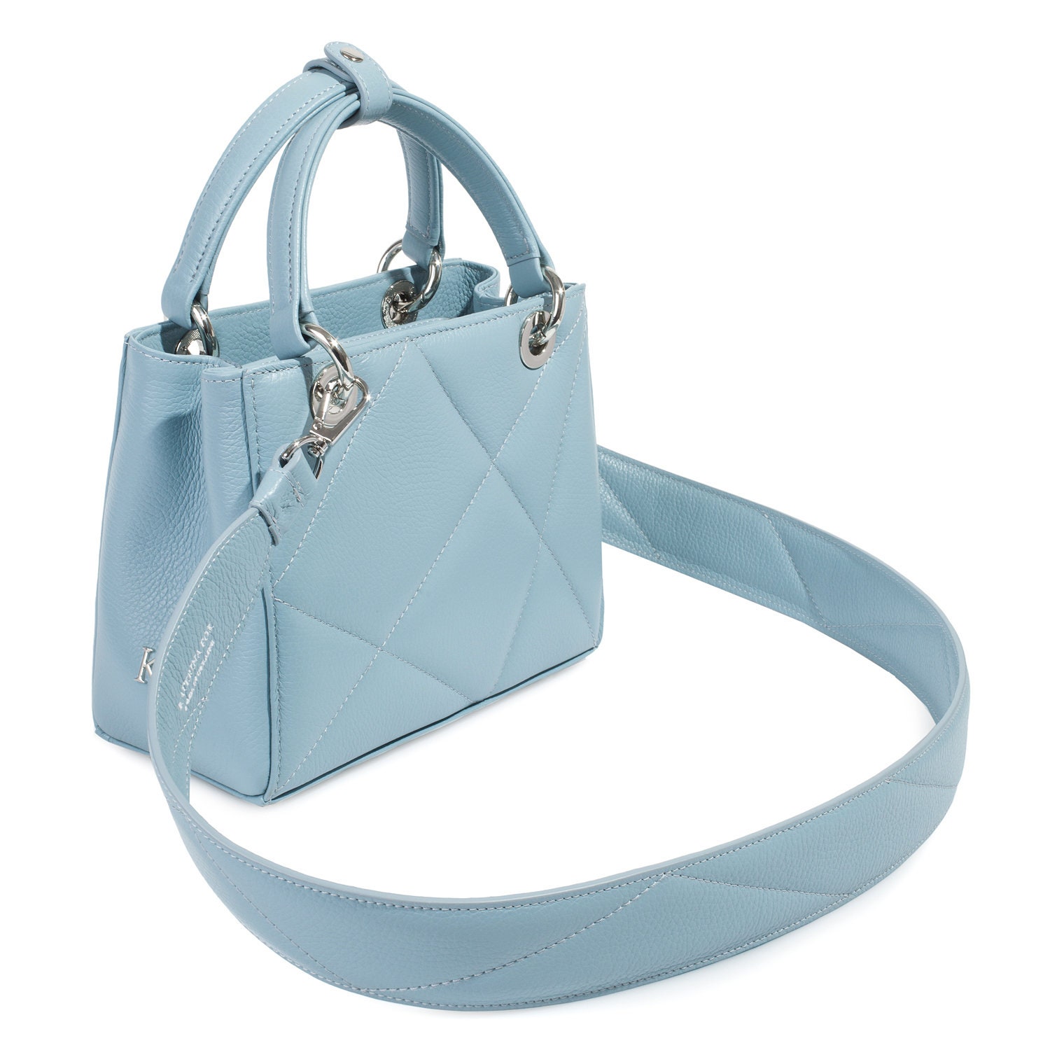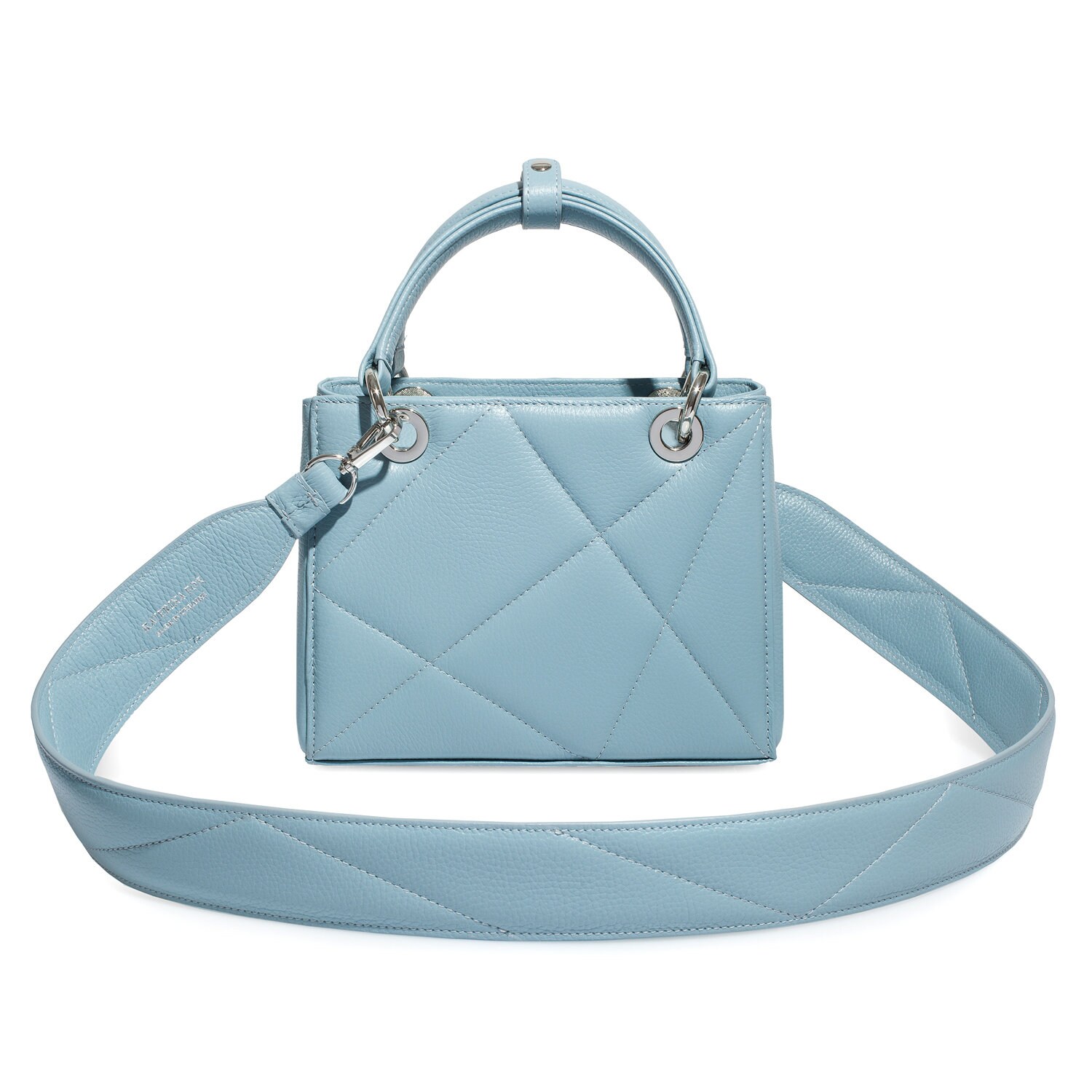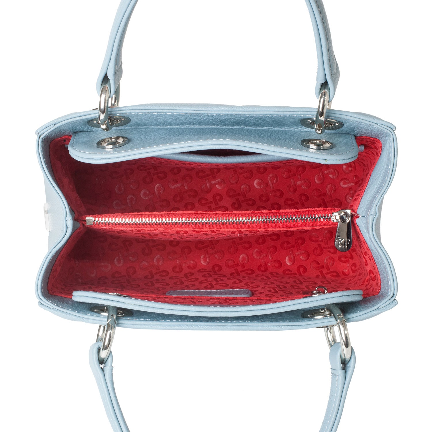 Women's leather bag made of genuine leather, hardware with galvanic coating and microfiber lining. The internal space of a bag is equipped with three spacious compartments and two patch-pockets and one zipper pocket. Closes with 2 buttons magnet. The bottom of the bag is protected with metal legs. The kit also includes a storage bag.