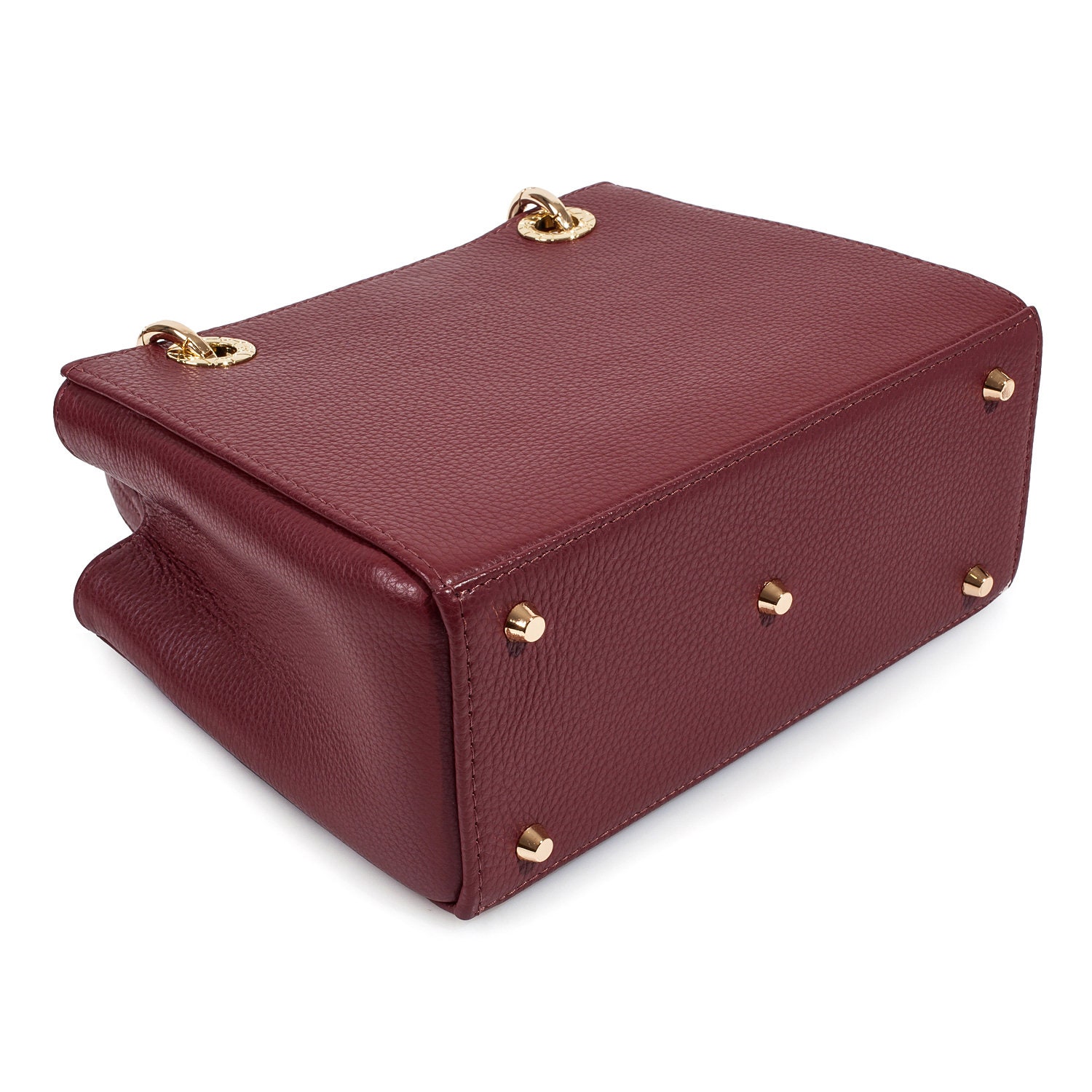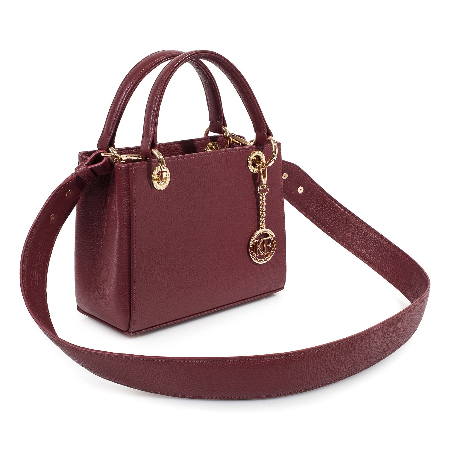 Delivery: In most cases our goods are shipped by FedEx or Ups Express. On rare occasions the goods might be shipped by Ukrposhta. The clients should check in advance an estimate of the amount of customs duty and value added tax.Marsala genuine leather handbag from ukrainian designer Katerina Fox. This model is designed for women who appreciate the sleek design combined with functionality and comfort. Despite the simplicity, this bag stands out thanks to a triangular insert in black suede leather. High-quality and reliable hardware ensure long service bags. Inside the bag are three spacious compartments, one with zip, two patch pockets and one zippered pocket closes with a zipper. The bottom of the bag protected by metal feet.