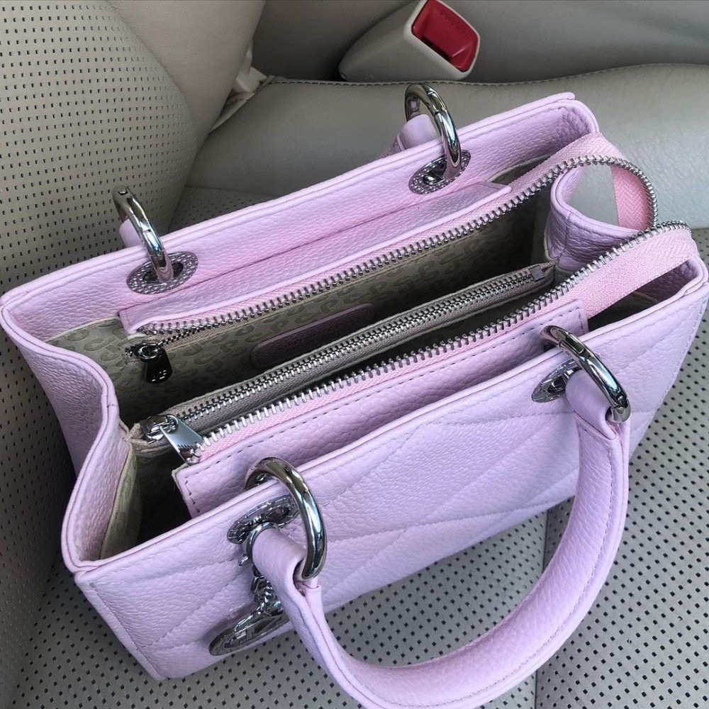 Pink genuine leather handbag from ukrainian designer Katerina Fox. This model is designed for women who appreciate the sleek design combined with functionality and comfort. High-quality and reliable hardware ensure long service bags. Inside the bag are three spacious compartments, one with zip, two patch pockets and one zippered pocket closes with a zipper. The bottom of the bag protected by metal feet.