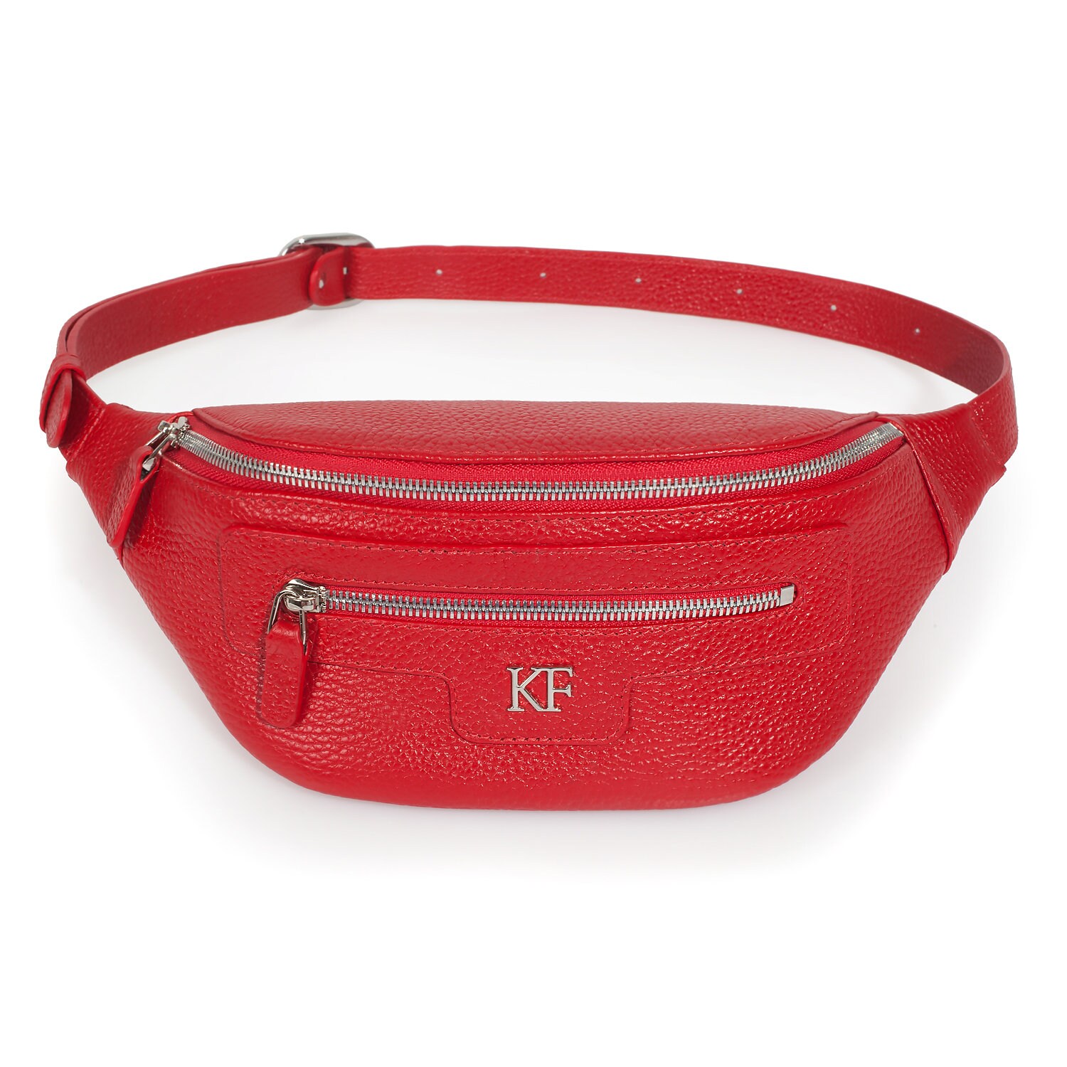 Red genuine leather woman bananka bag from ukrainian designer Katerina Fox. Fashionable and elegant modern bag KF for bright girls and women. This bag is able to attract attention and highlight your exquisite taste. Inside the bag is one large compartment and a convenient zippered pocket for small items, closes the bag on the zipper.