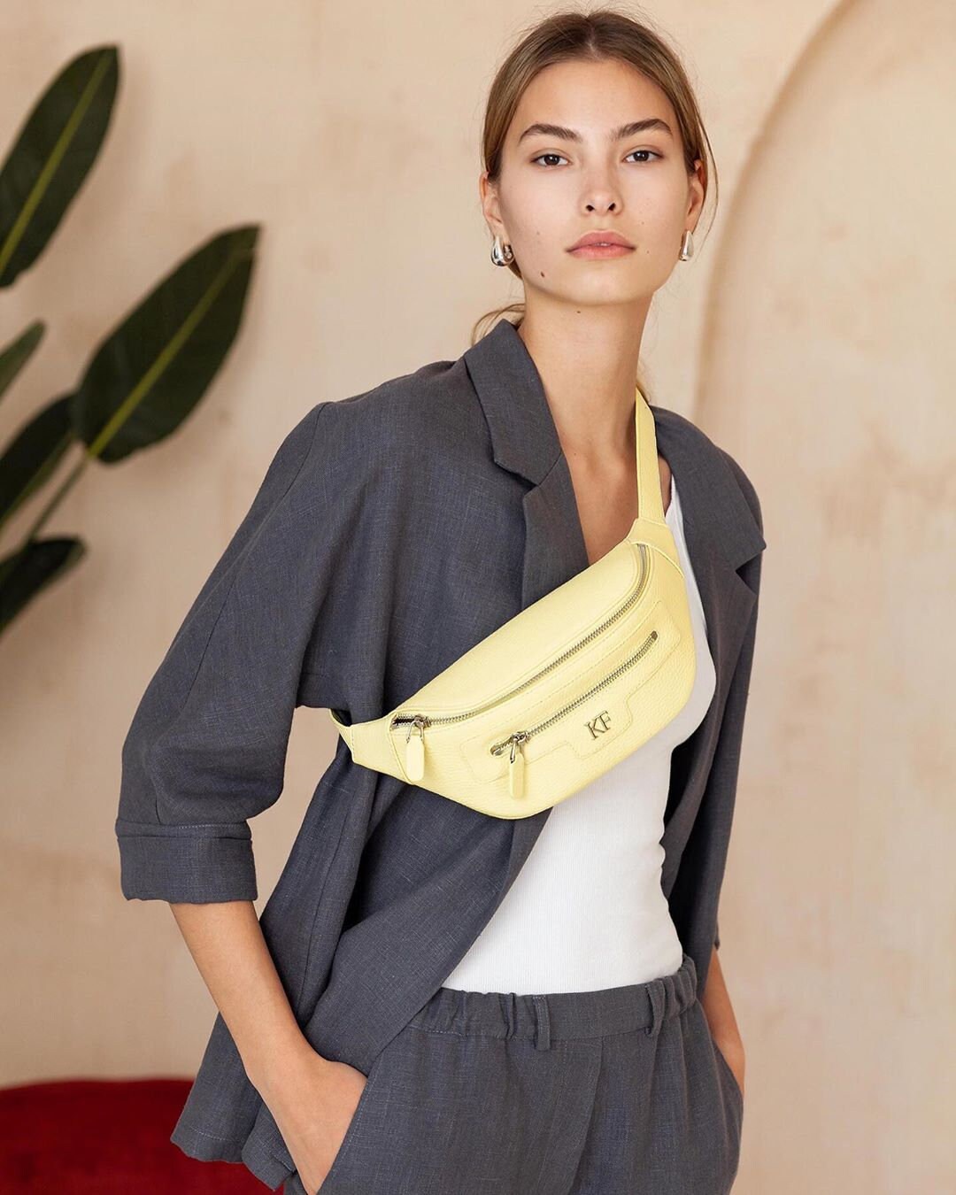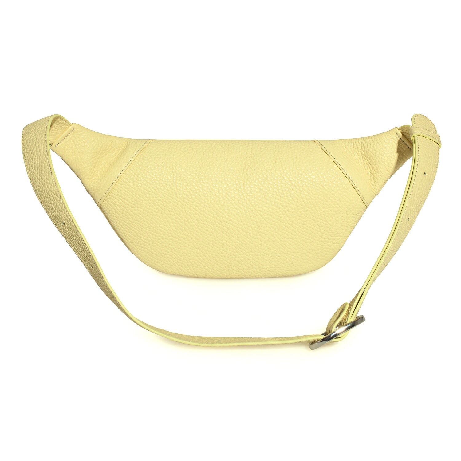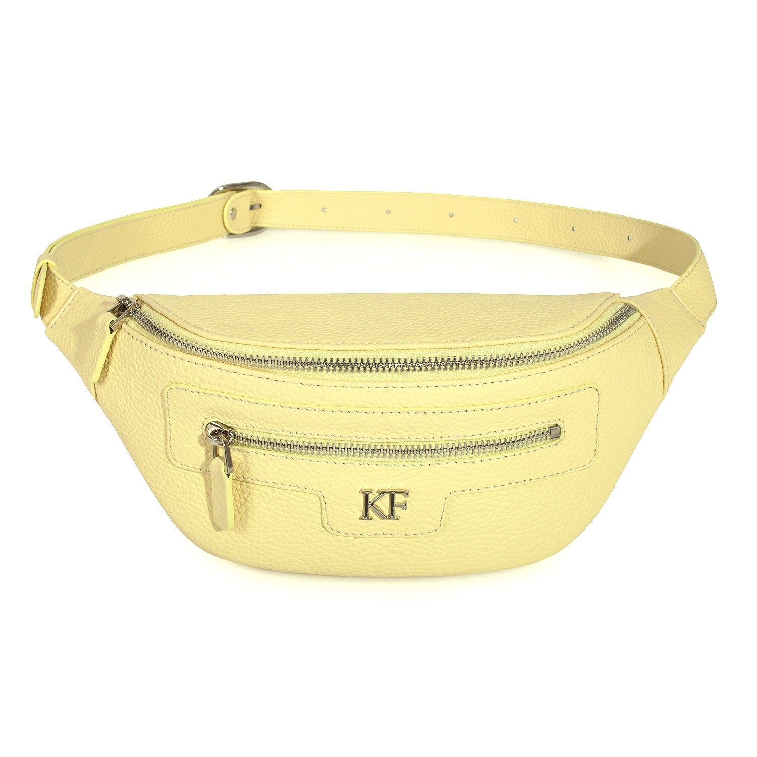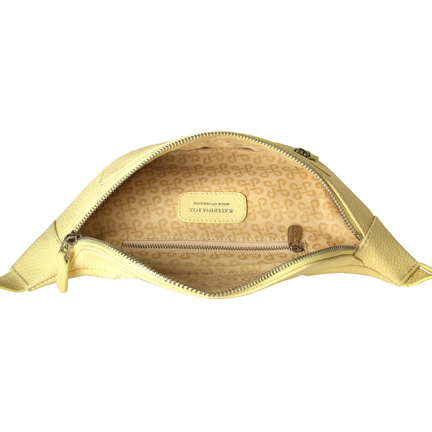 Yellow (lemon) genuine leather woman bananka bag from ukrainian designer Katerina Fox. Fashionable and elegant modern bag KF for bright girls and women. This bag is able to attract attention and highlight your exquisite taste. Inside the bag is one large compartment and a convenient zippered pocket for small items, closes the bag on the zipper.
