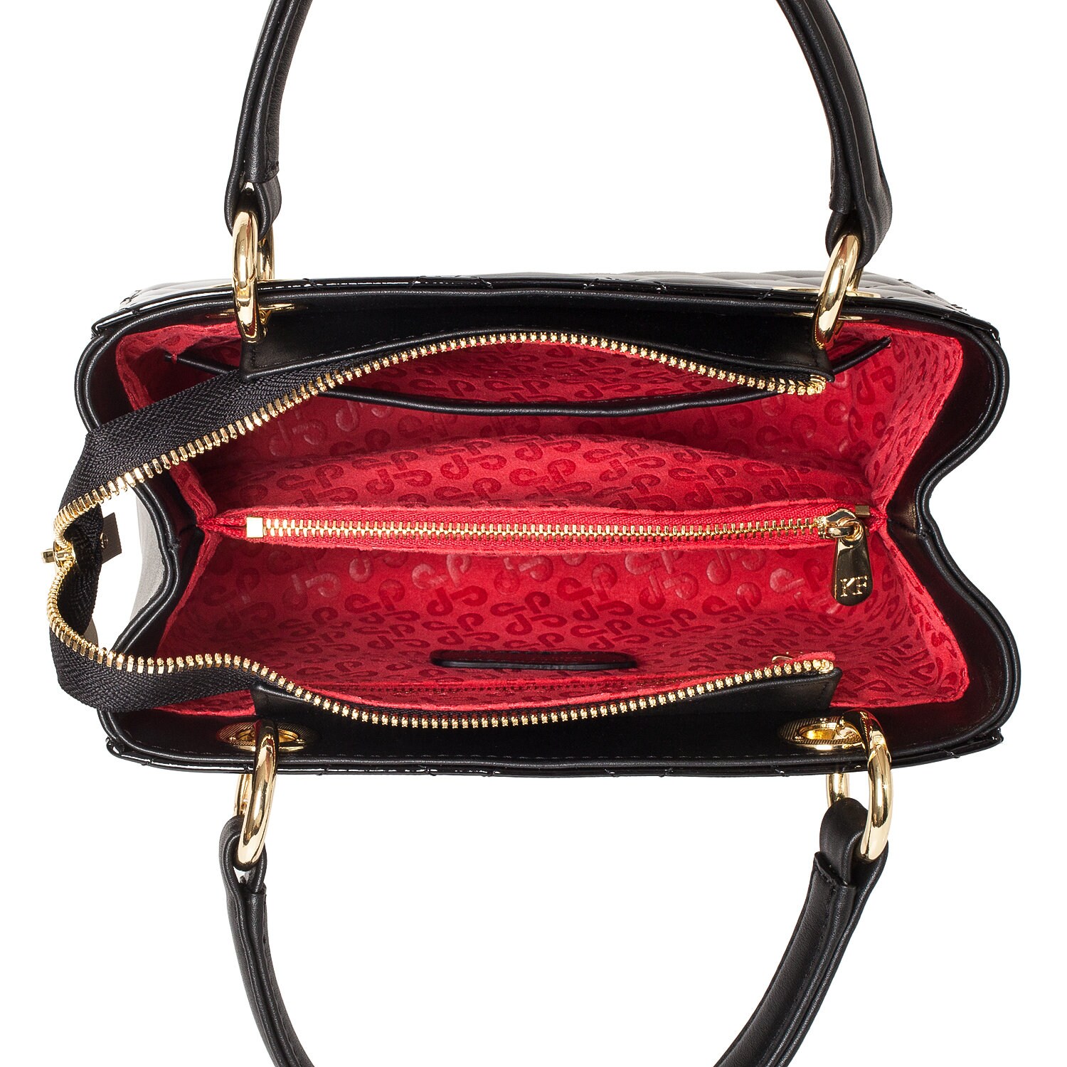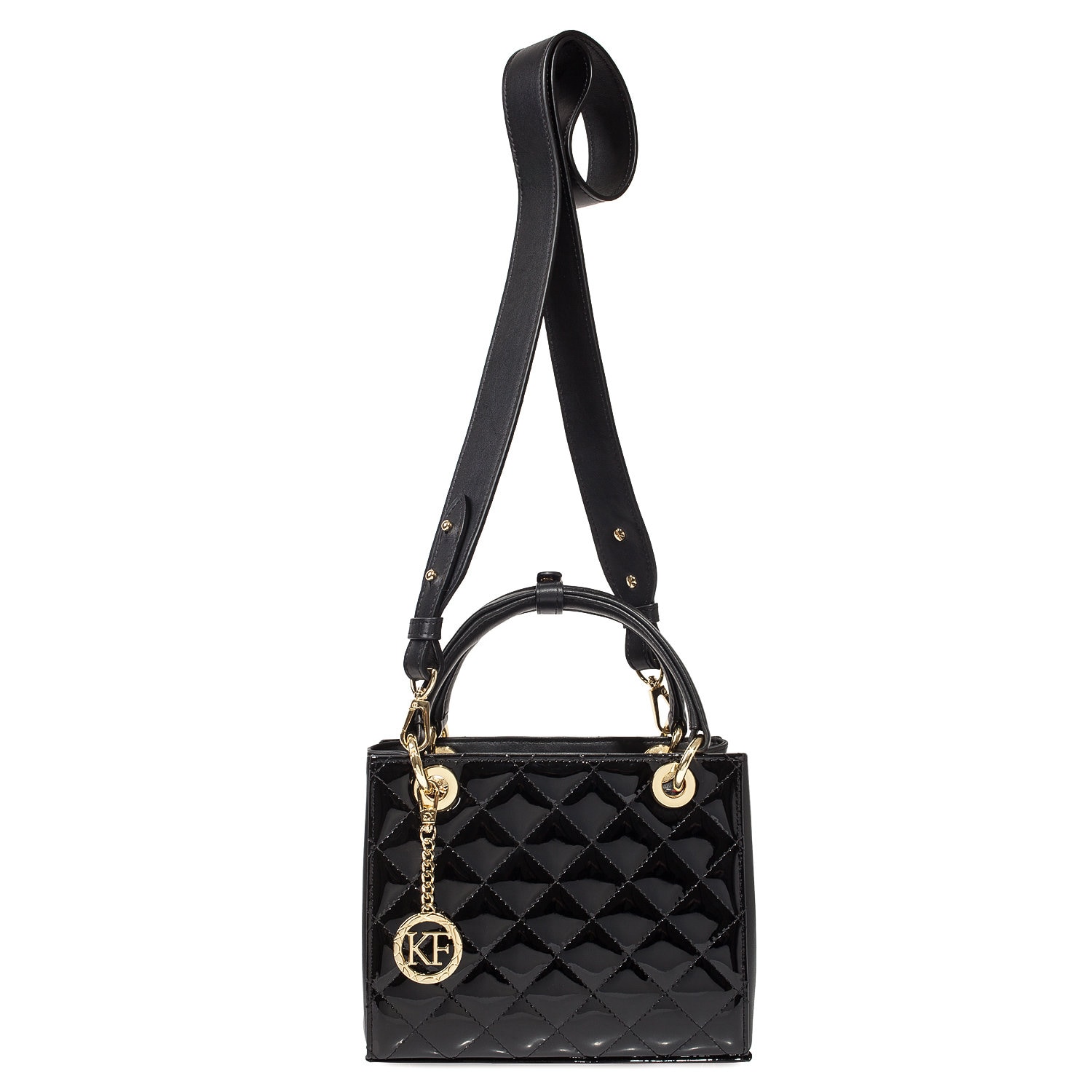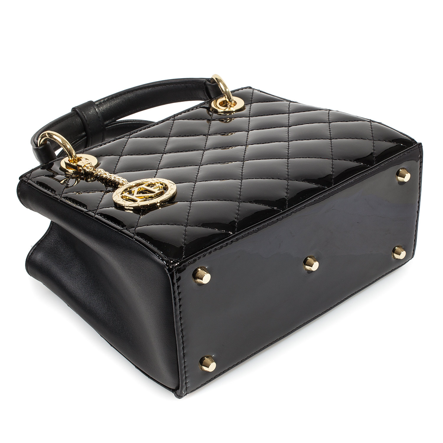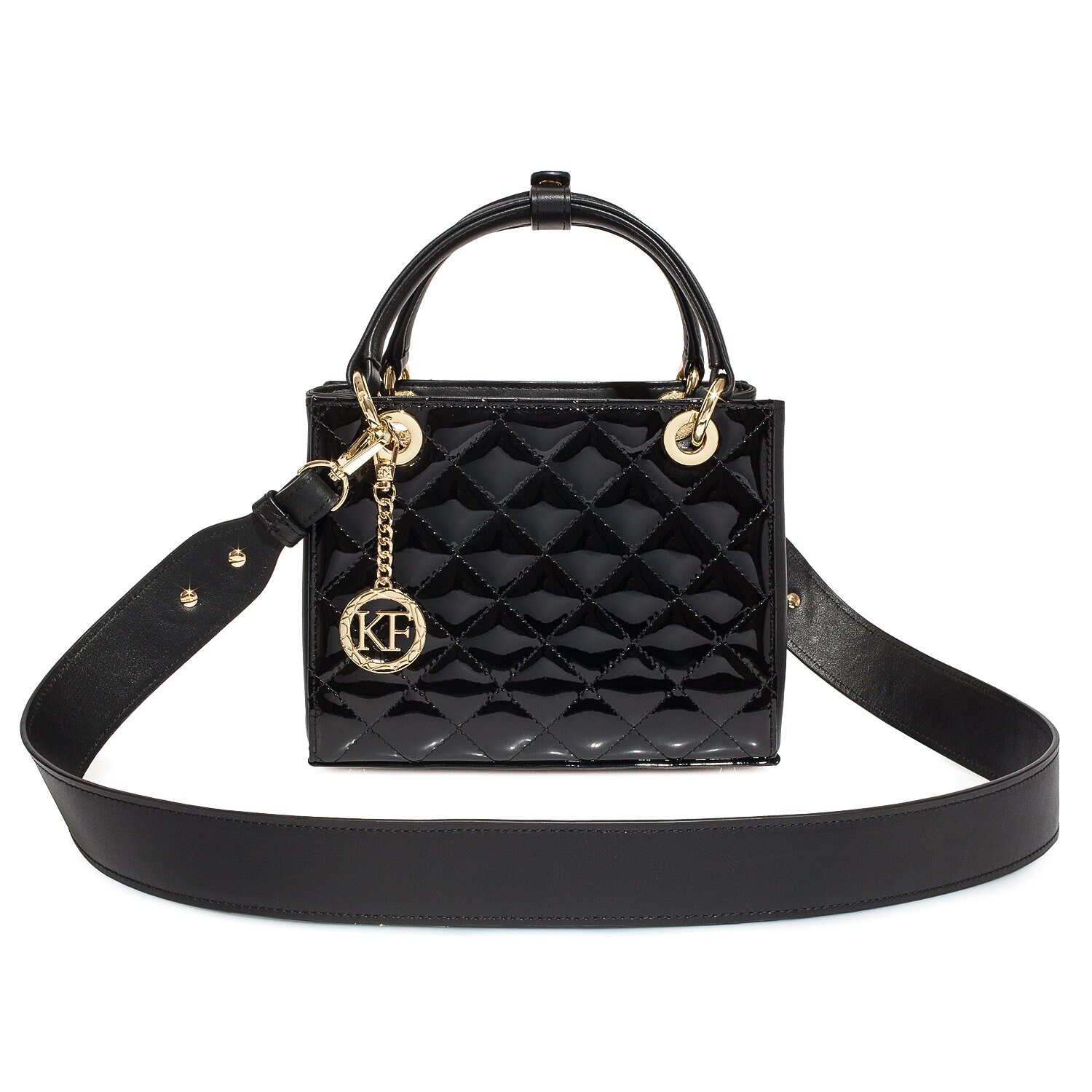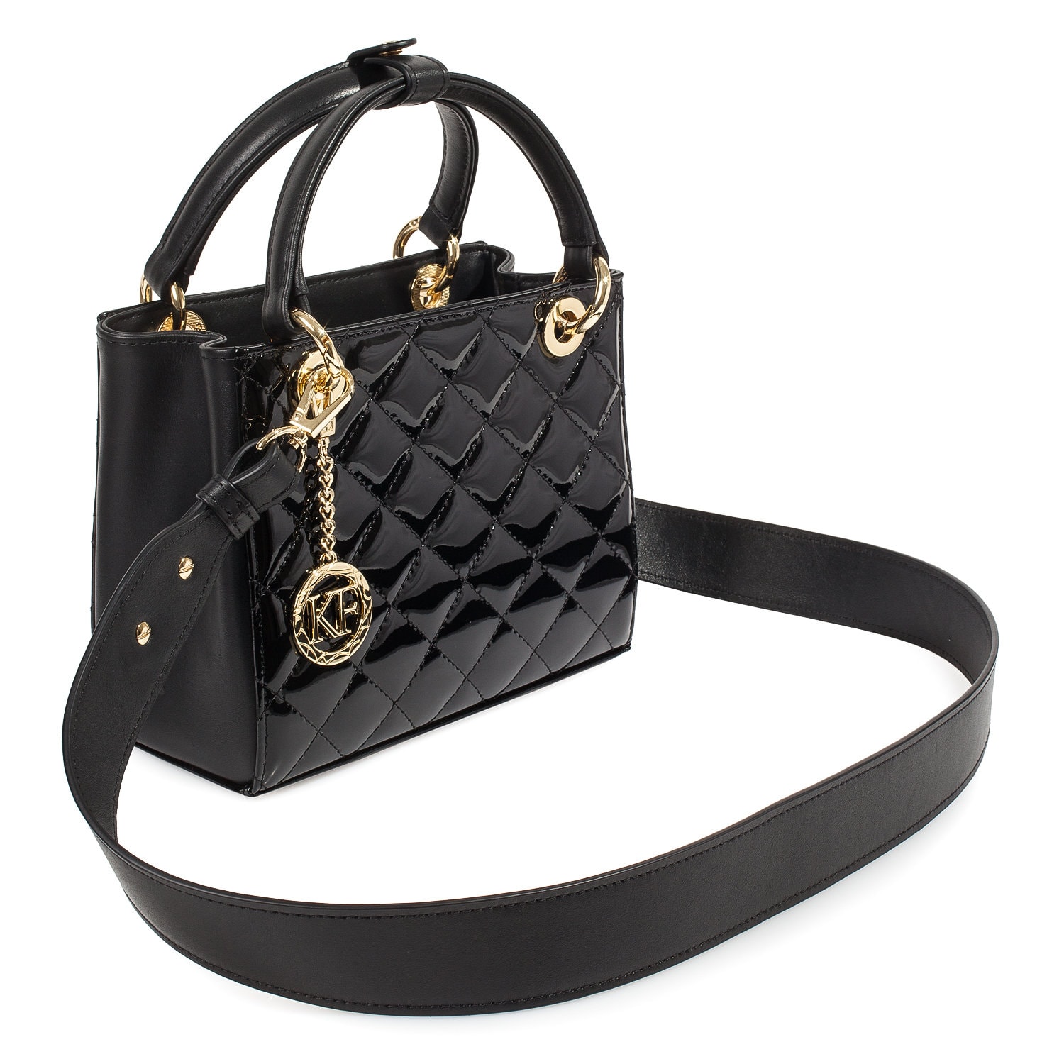 Black genuine leather handbag from ukrainian designer Katerina Fox. This model is designed for women who appreciate the sleek design combined with functionality and comfort. Despite the simplicity, this bag stands out thanks to a triangular insert in black suede leather. High-quality and reliable hardware ensure long service bags. Inside the bag are three spacious compartments, one with zip, two patch pockets and one zippered pocket closes with a zipper. The bottom of the bag protected by metal feet.