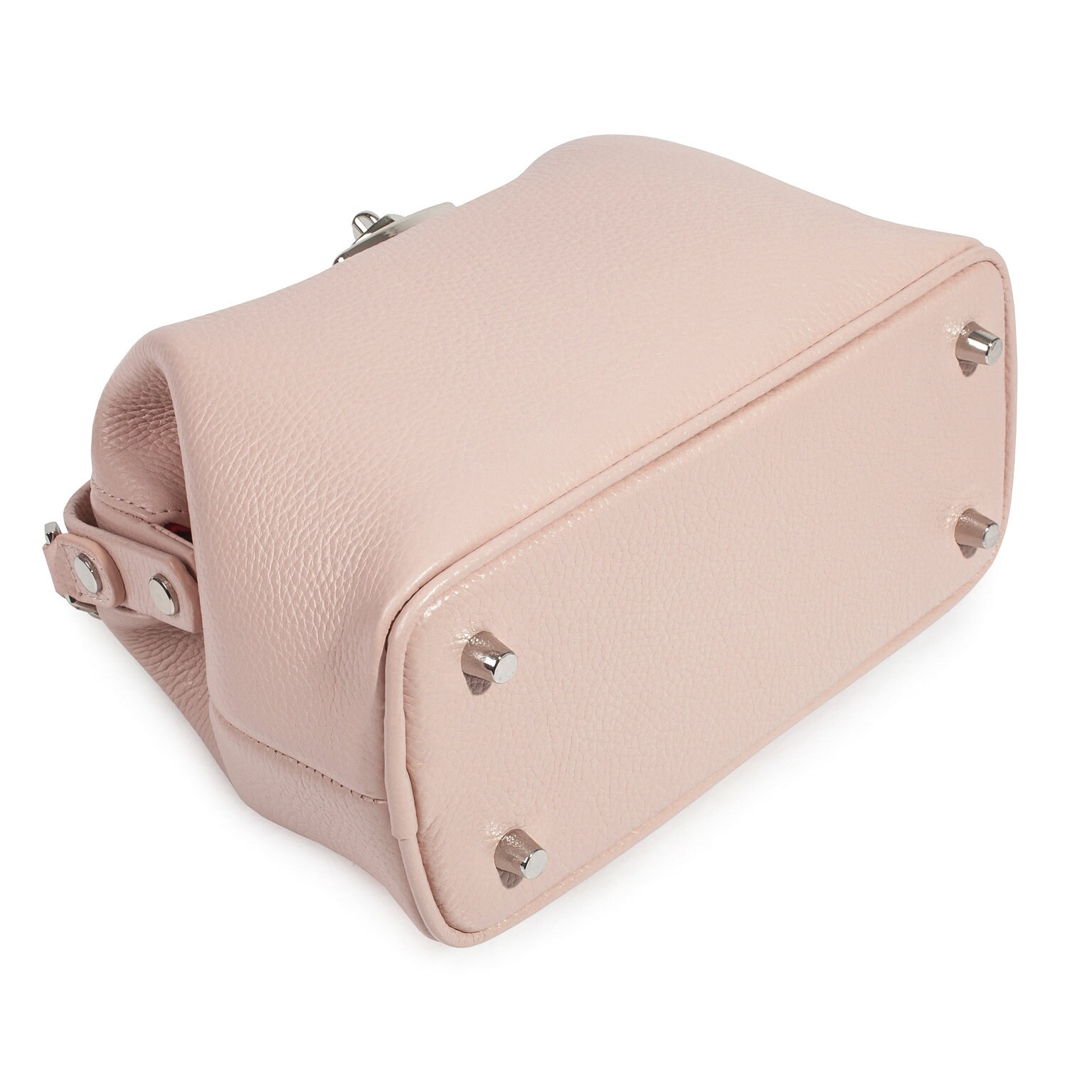 Beige (nude) genuine leather handbag from ukrainian designer Katerina Fox. This model is designed for women who appreciate the sleek design combined with functionality and comfort. High-quality and reliable hardware ensure long service bags. The internal space of a bag is equipped with one spacious compartment and two patch-pockets and one zipper pocket. The bag is closed with a clasp. The bottom of the bag is protected with metal legs. There is a long handle that allows you to wear the bag on the shoulder. The kit also includes a storage bag.
