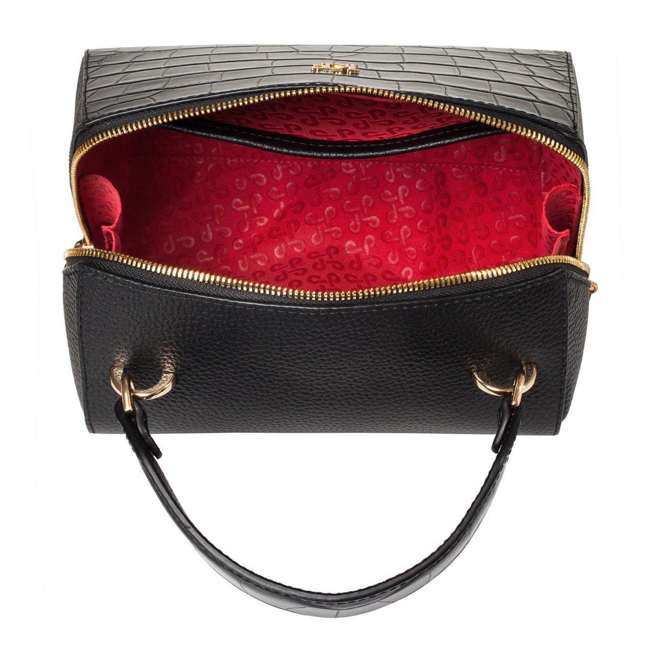 Black genuine leather handbag from ukrainian designer Katerina Fox. This model is designed for women who appreciate the sleek design combined with functionality and comfort. High-quality and reliable hardware ensure long service bags. The internal space of a bag is equipped with one spacious compartment and two patch-pockets and one zipper pocket. The bag is closed with a zipper. The bottom of the bag is protected with metal legs. There is a long handle that allows you to wear the bag on the shoulder. The kit also includes a storage bag.